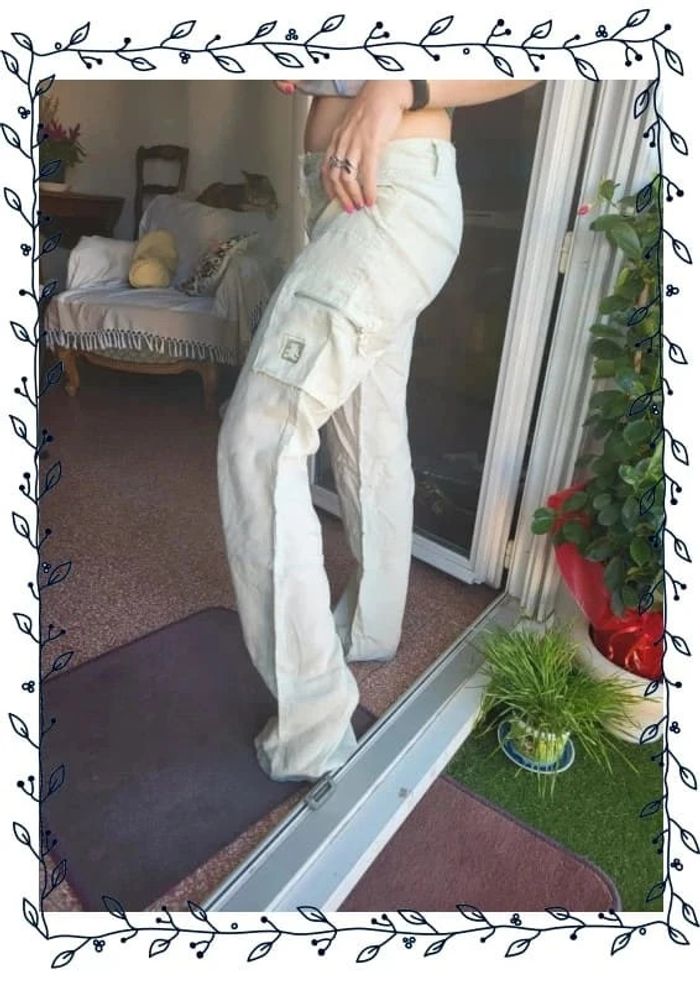 Une mini tache voir la 4ieme photo. Jamais porté à juste été lavé. Desole en panne de fer à repasser ! Vert clair. Photo porté dernières photos (je mesure 1m50) #papillonduvarpantalon #papillonduvarfemme