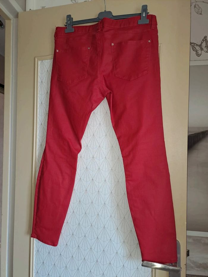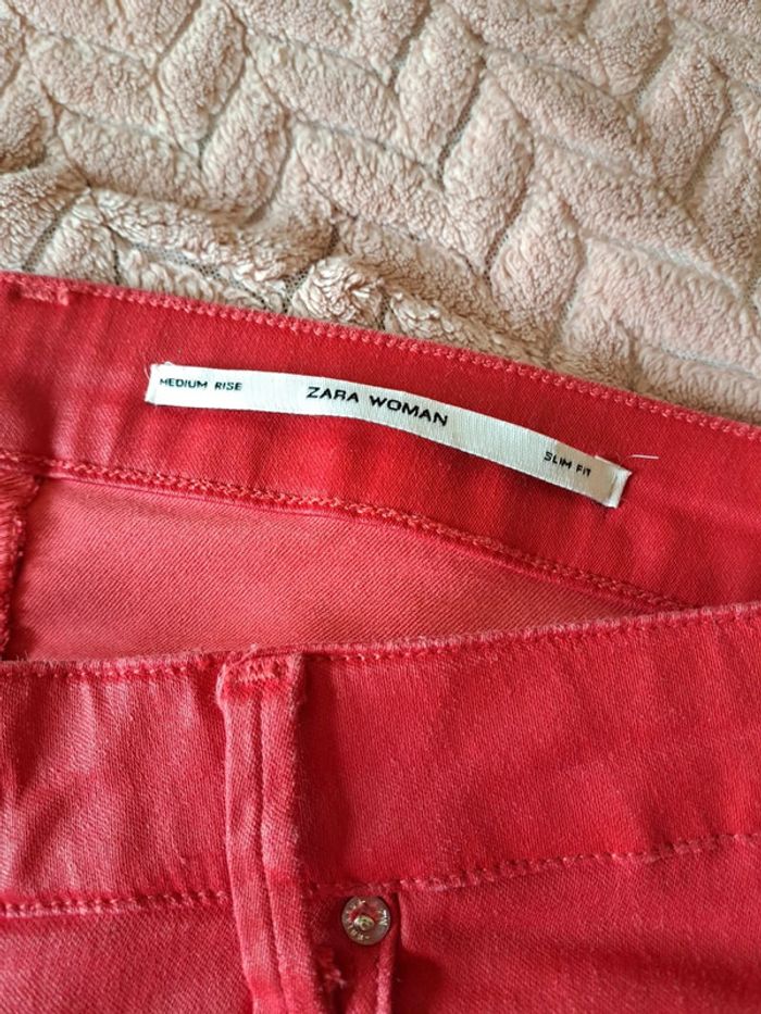 Pantalon femme rouge zara slim coton huilé 42 tbe - photo numéro 3