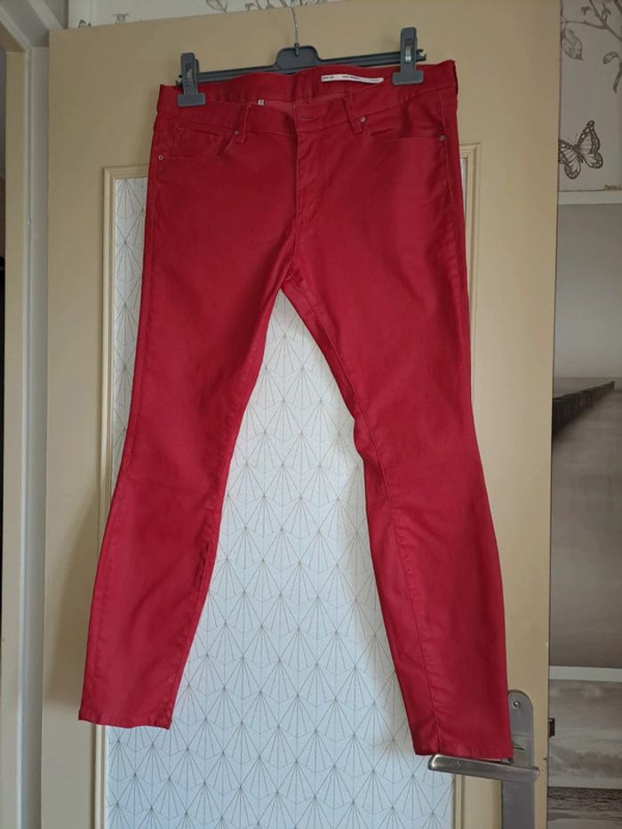 Pantalon femme rouge zara slim coton huilé 42 tbe - photo numéro 1