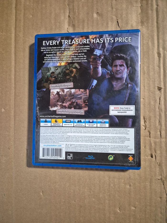 Uncharted 4 pour PS4 en très bon état. La boîte du jeu est en allemand mais le jeu passe bien également en français. #jvtm59_PS4