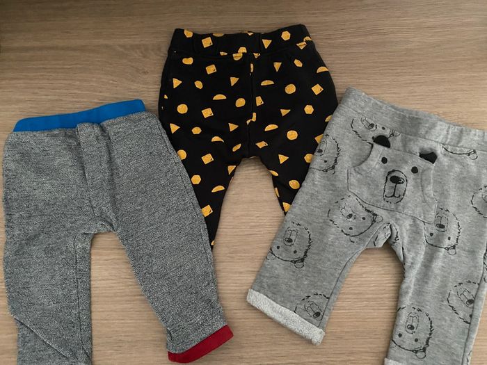 Lot 3 joggings Taille 9 mois Marque KIABI, ORCHESTRA, Bon état général, possibles traces d’usure #bluecat_elian_9mois Possibilité de réduction selon lot N'hésitez pas à me contacter si vous avez des questions 😊 /!\ envoi rapide et soigné /!\ Tous les articles sont inspectés une nouvelle fois avant envoi /!\ Les vêtements sont stockés dans un carton, dans une penderie /!\ Maison non fumeur
