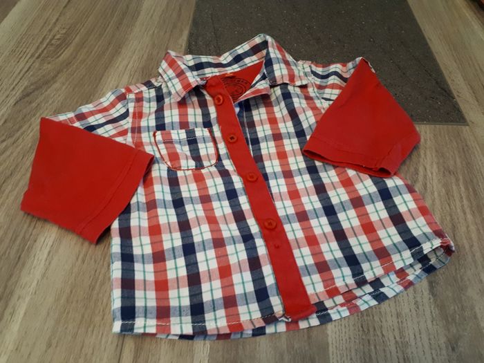 ++Elégante Chemise à carreaux ton rouge et bleu - garçon 6 mois