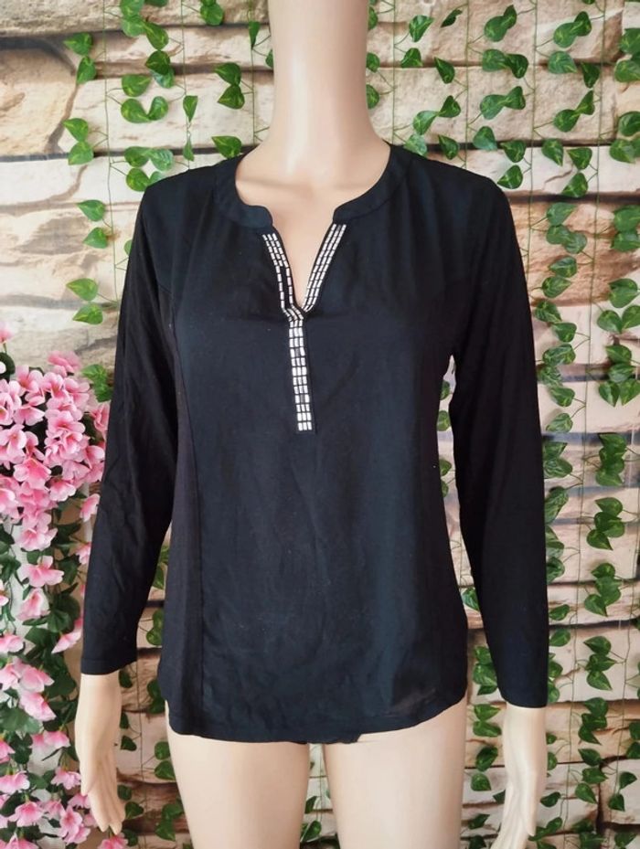 🌸Blouse noir a Col V argenté Taille 38🌸 - photo numéro 2