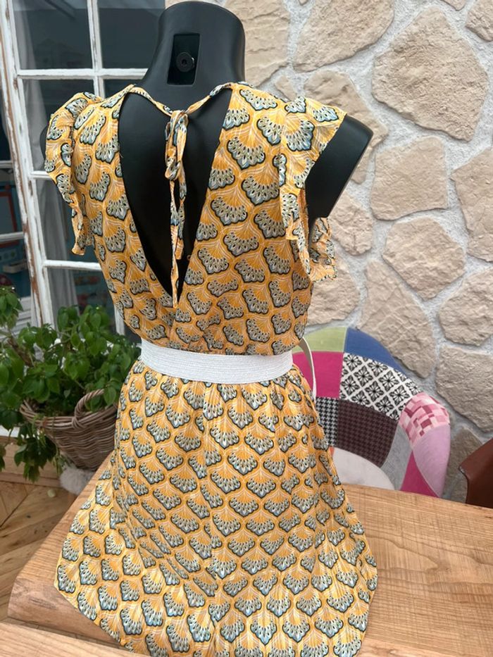 Robe by one femme été dos nu jaune neuve à motif voilage fleurs S m - photo numéro 8