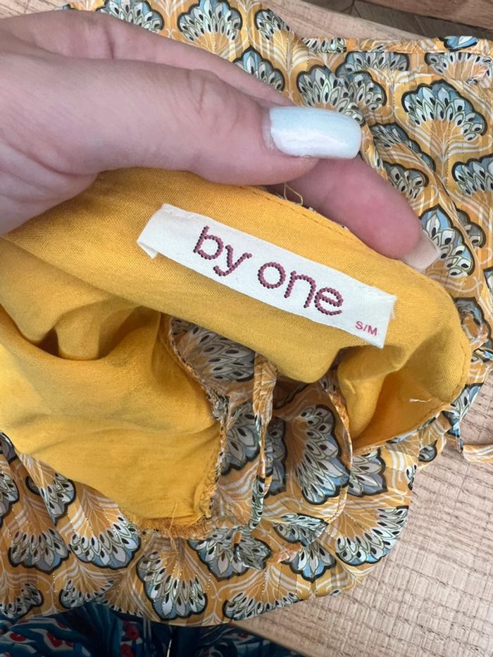 Robe by one femme été dos nu jaune neuve à motif voilage fleurs S m