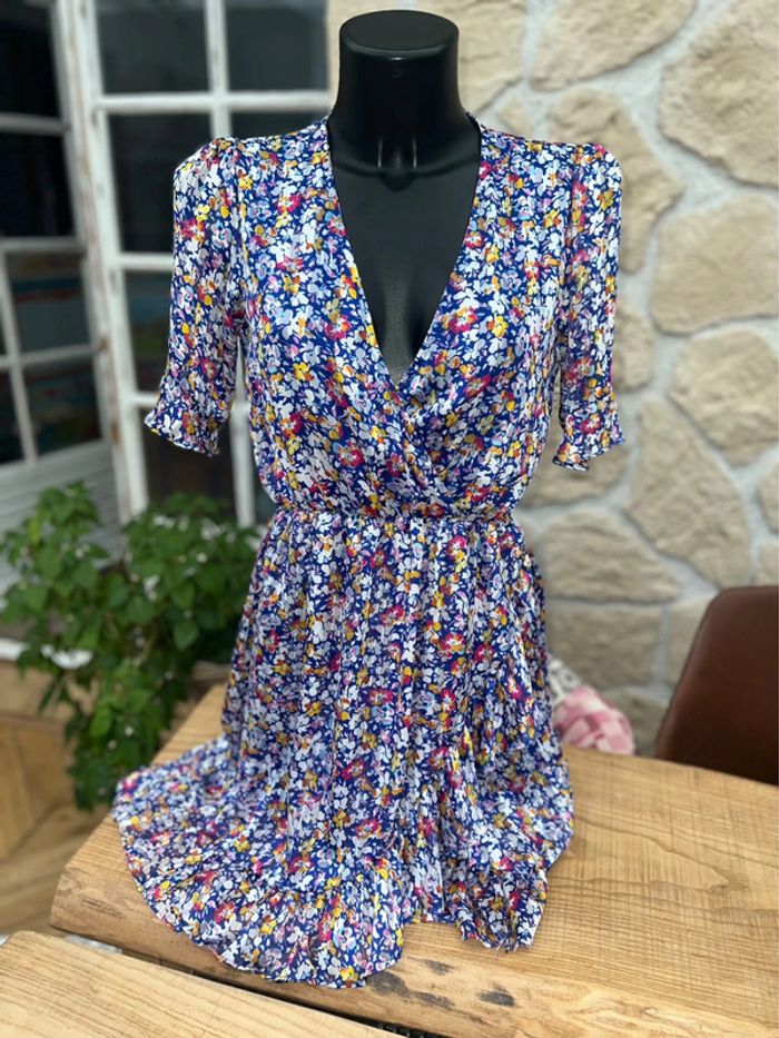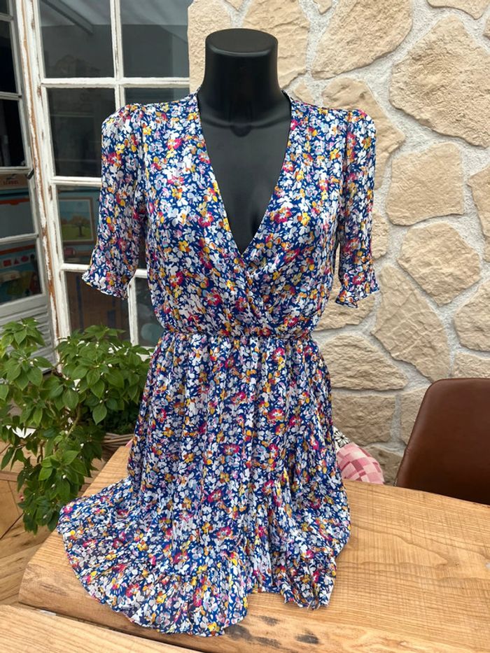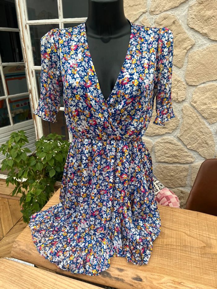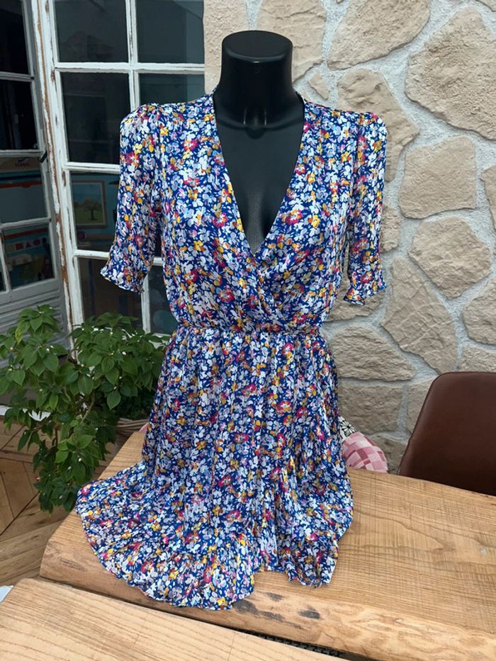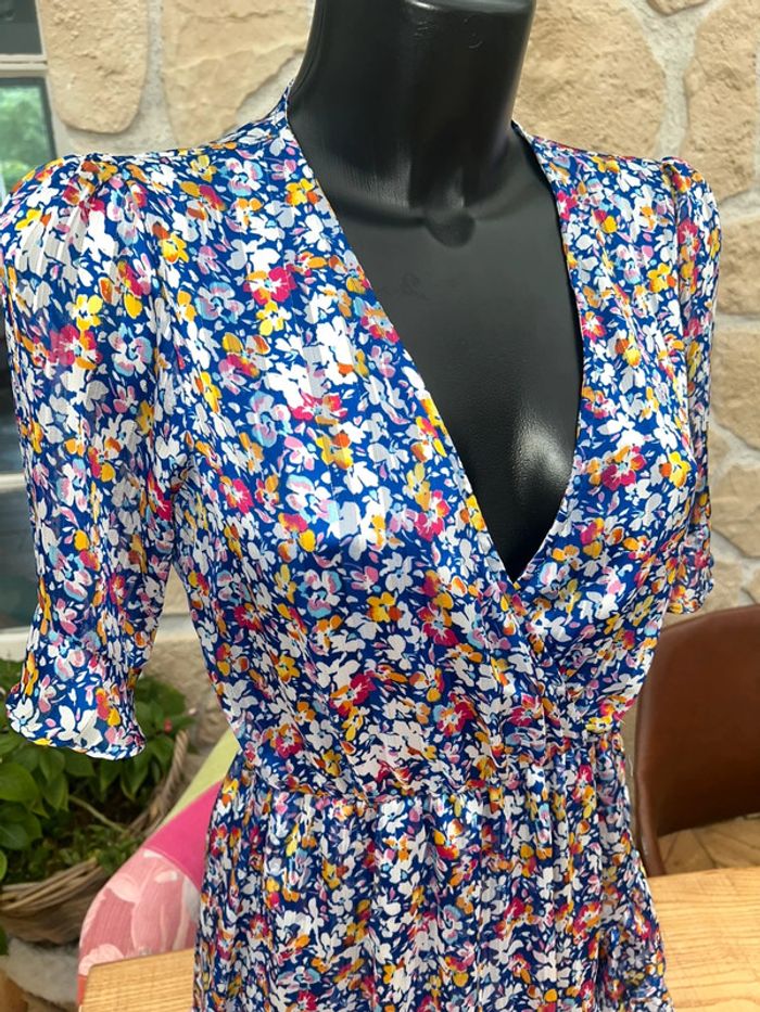 Robe rue des Abbesses taille M 38 bleu électrique à fleurs été voilage - photo numéro 3