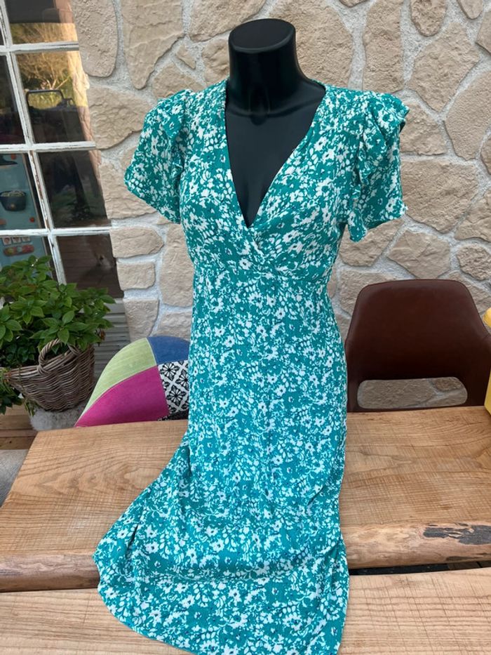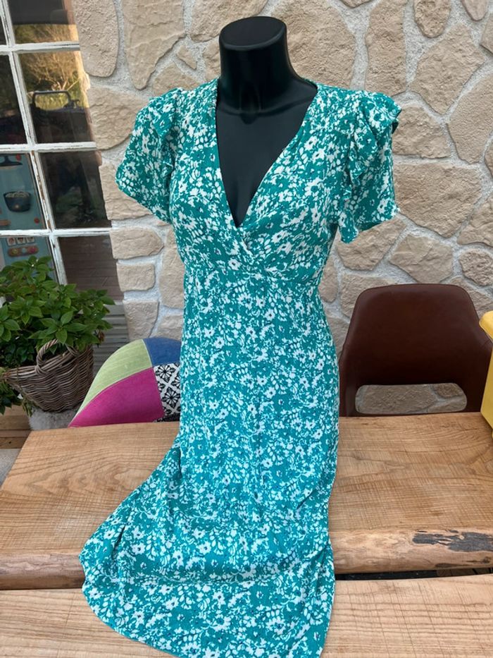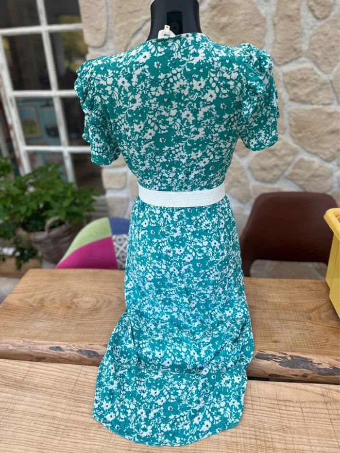 Robe an’ge taille 0 XS S 34 36 été bleu blanche longue femme fleurs - photo numéro 7