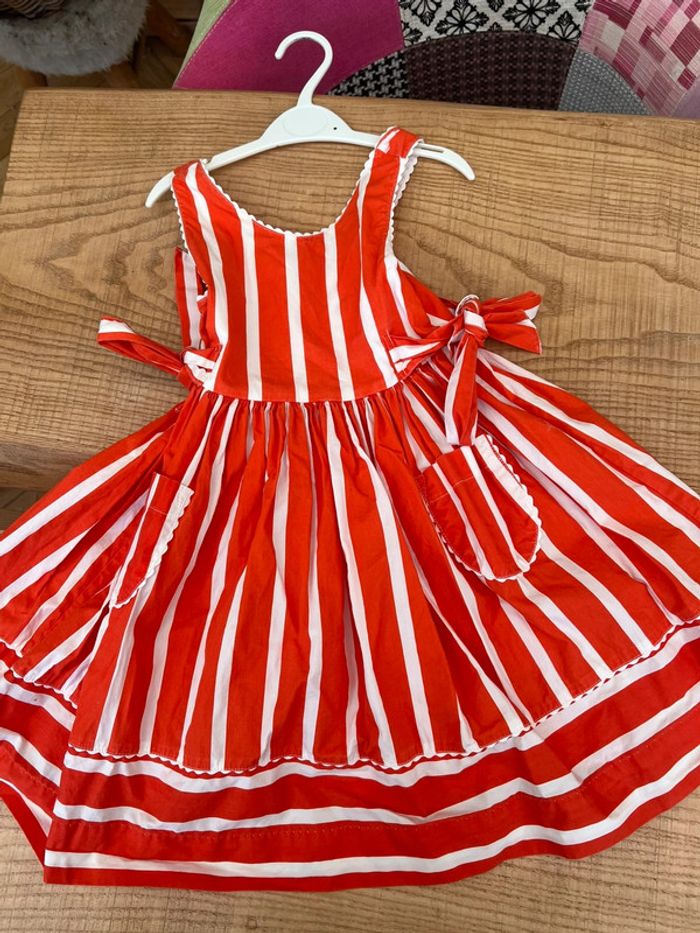 Robe à l’heure été anglaise 4 ans 104 cm dos nu orange blanche - photo numéro 2