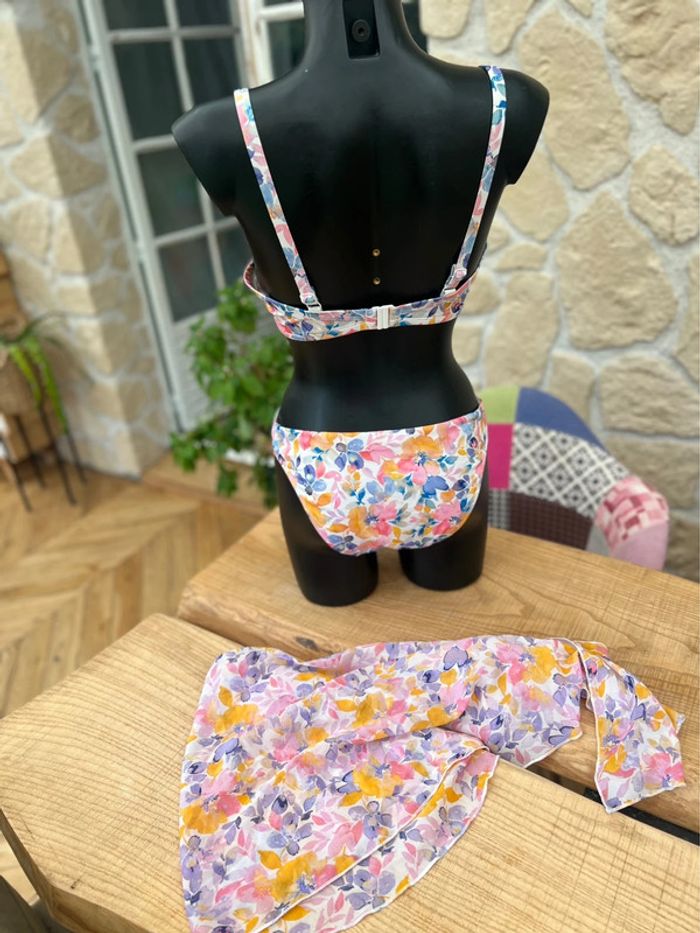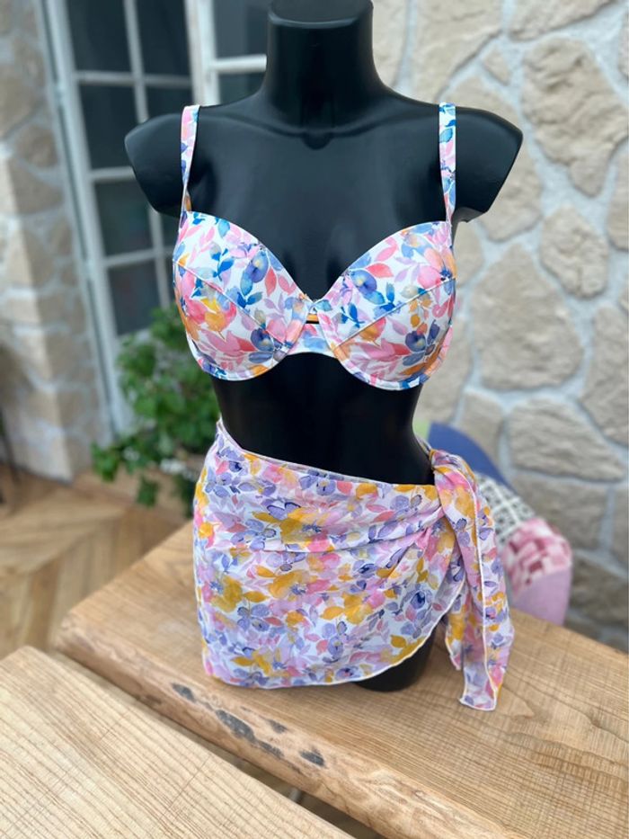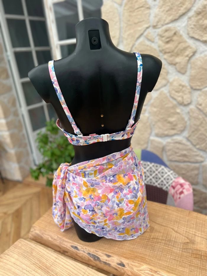 Ensemble de maillot de bain paréo hunkemoller à fleurs été bikini 2 pièces taille M 38 95E