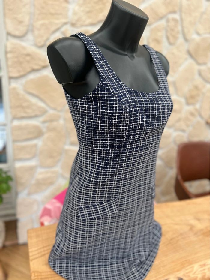 Robe en tweed Taille M / 38 Marque Gemo Neuve avec étiquette Bleu marine chinee blanche À porter avec un sous pull blanc dessous