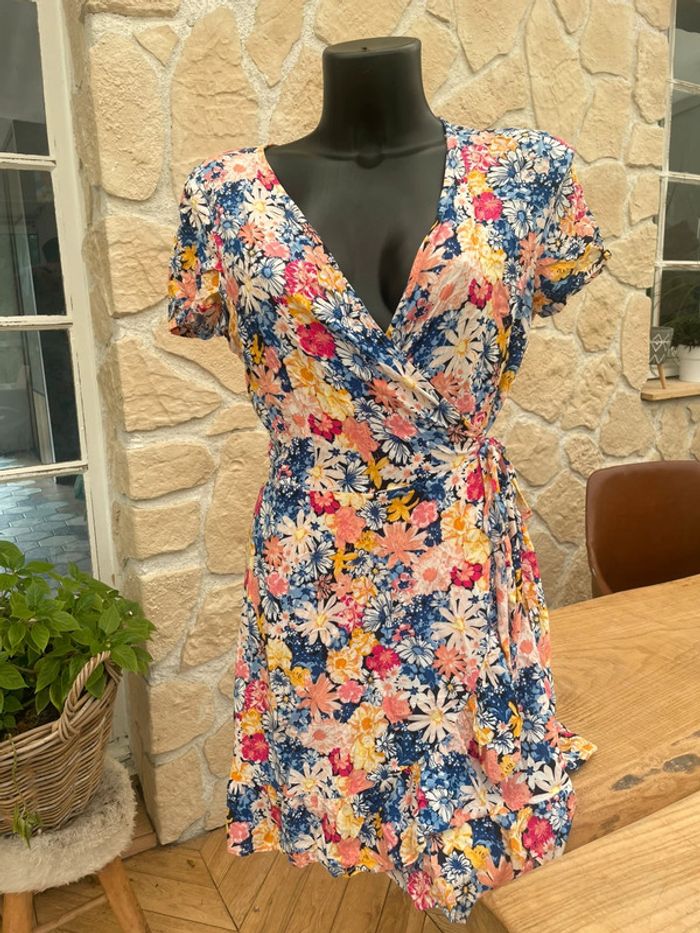 Robe kiabi colorée cache cœur taille 38 M multicolore à fleurs bleu rose - photo numéro 1