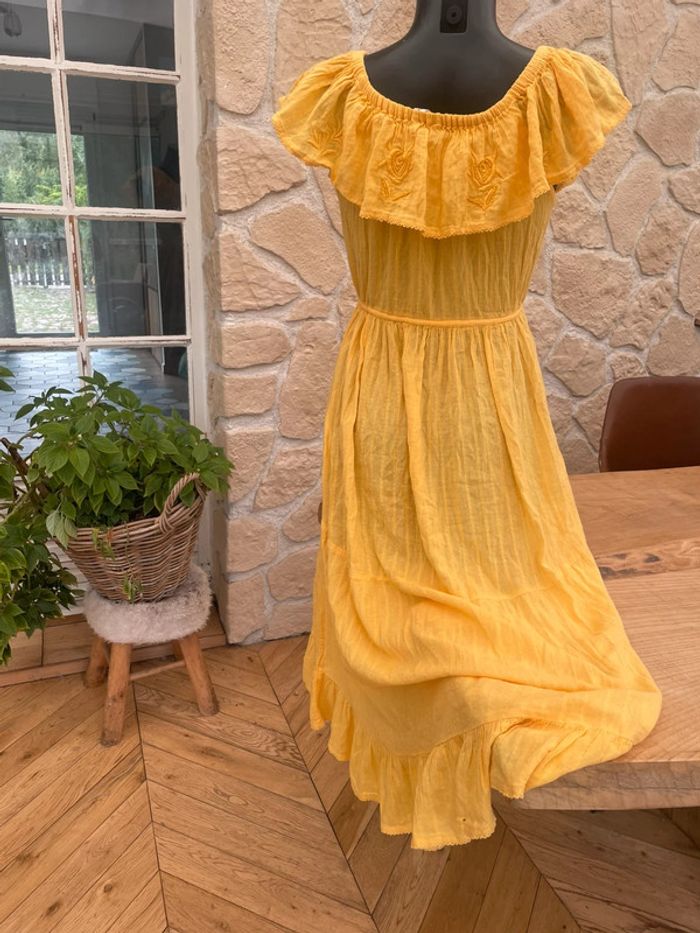 Robe longue jaune monsoon taille S été femme bohème fleurs