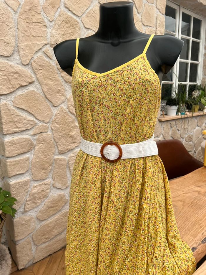 Robe T.U S M L 36 38 40 longue femme jaune à fleurs été asymétrique longue - photo numéro 3