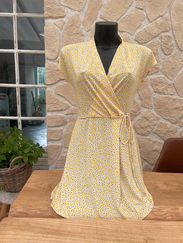 Robe mango taille S 36 jaune à fleurs blanche été - photo numéro 6