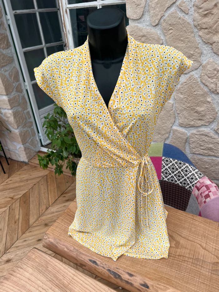 Robe mango taille S 36 jaune à fleurs blanche été - photo numéro 4