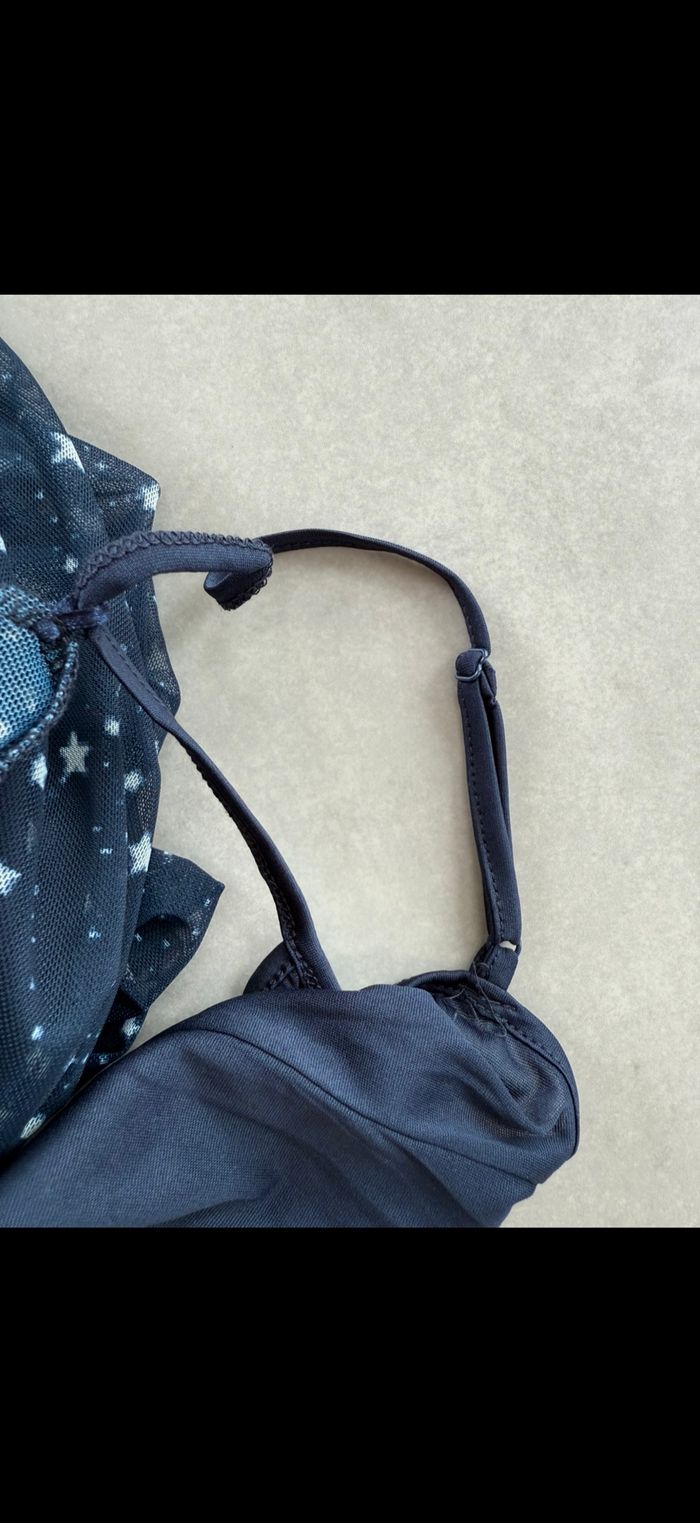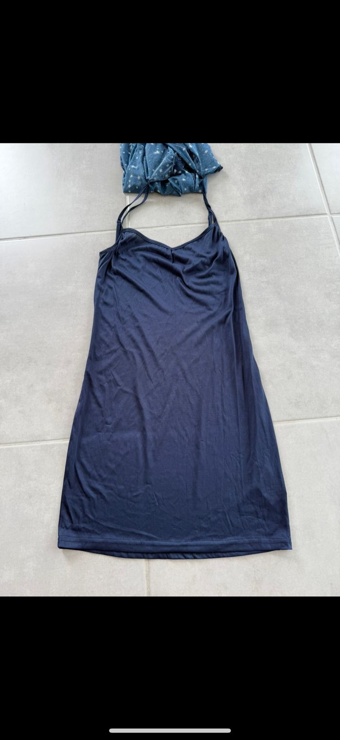 Très jolie robe neuve. Fines bretelles réglable avec jolies voilage bleu marine avec étoiles blanches. Encore plein de vêtements à mettre dans mon dressing. N'hésitez pas à vous abonner et à lire mon profil. 😉