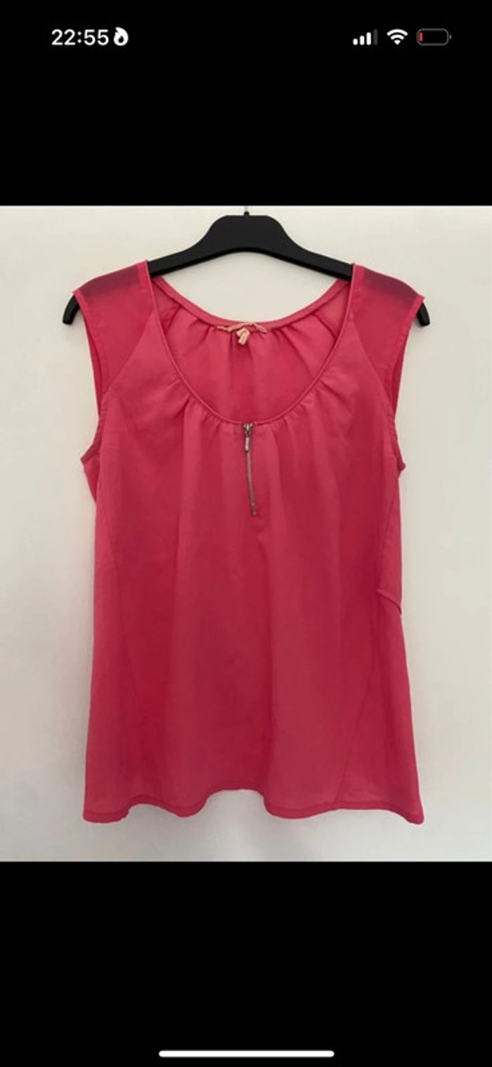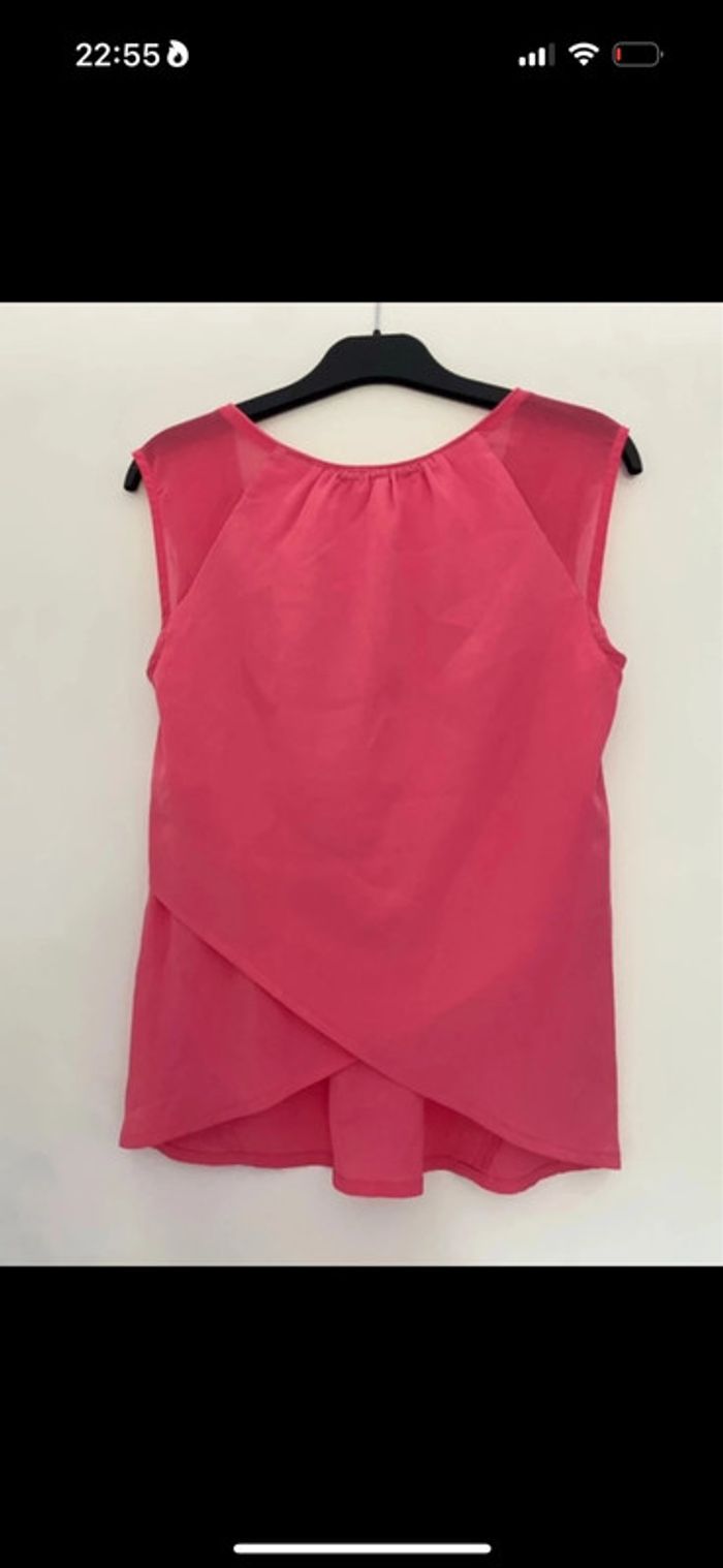 Très joli teeshirt rose, bretelles larges sur épaules en voile rose.