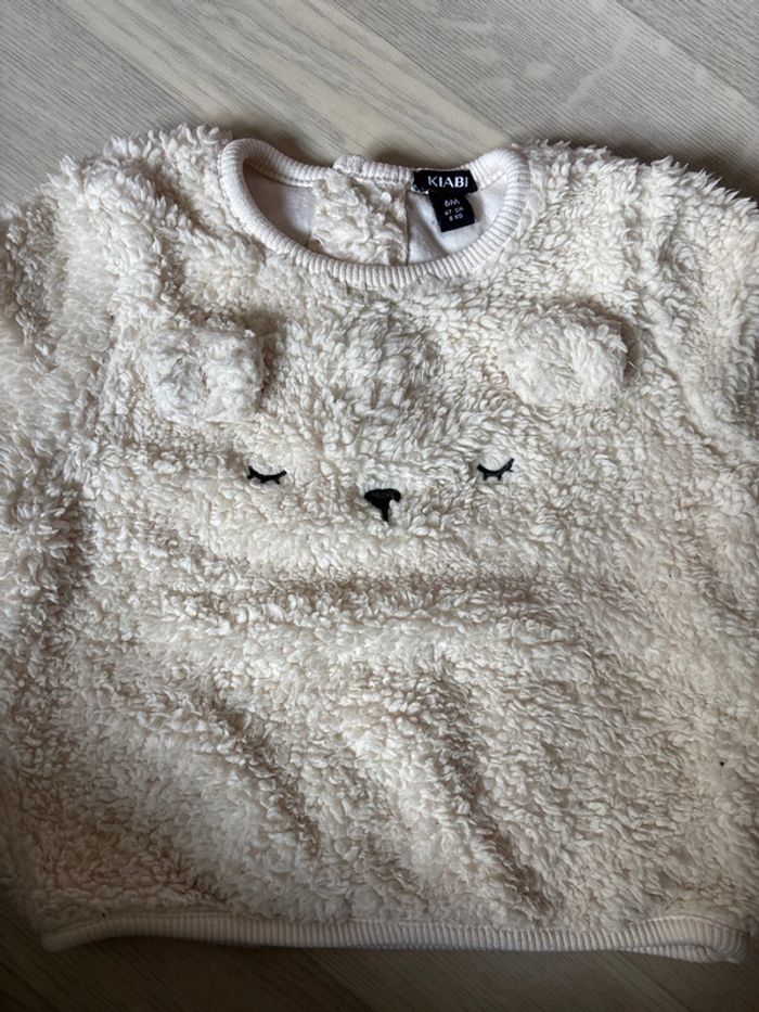 Pull bien chaud en taille 6 mois (67 cm) marque kiabi en très bon état Manches longues, intérieur coton et col rond ras le cou pour ne pas attraper froid. Motif petit ours avec oreilles en relief. #pullbébé #bébéfille #bebegarcon #bebemixte #6mois