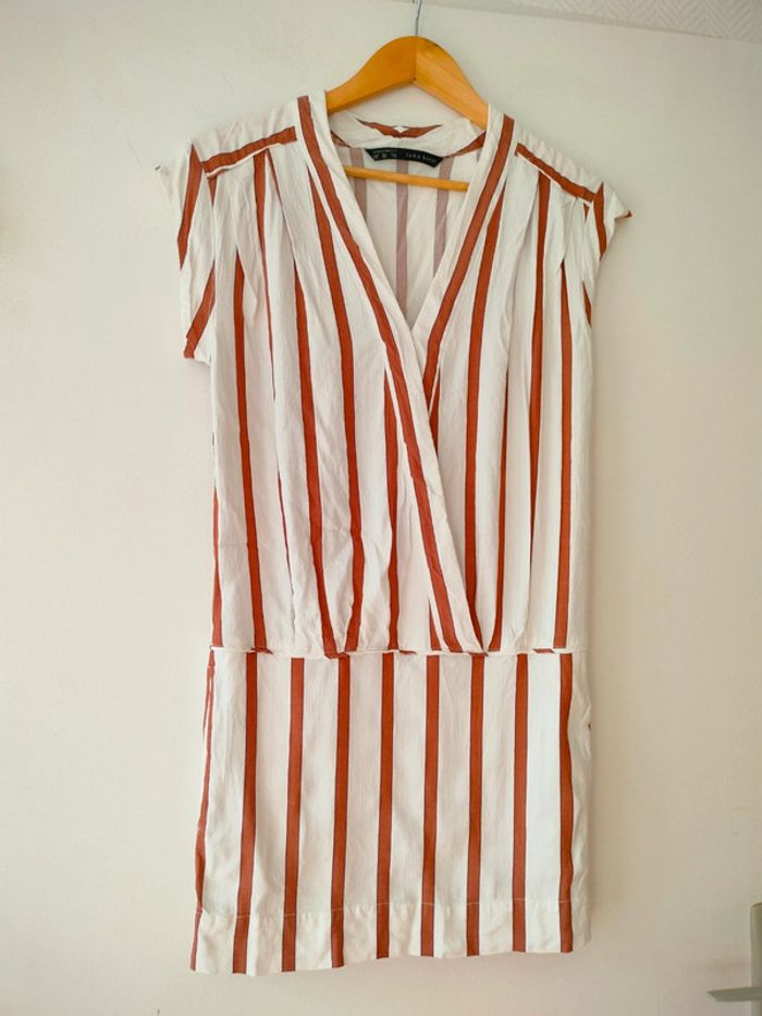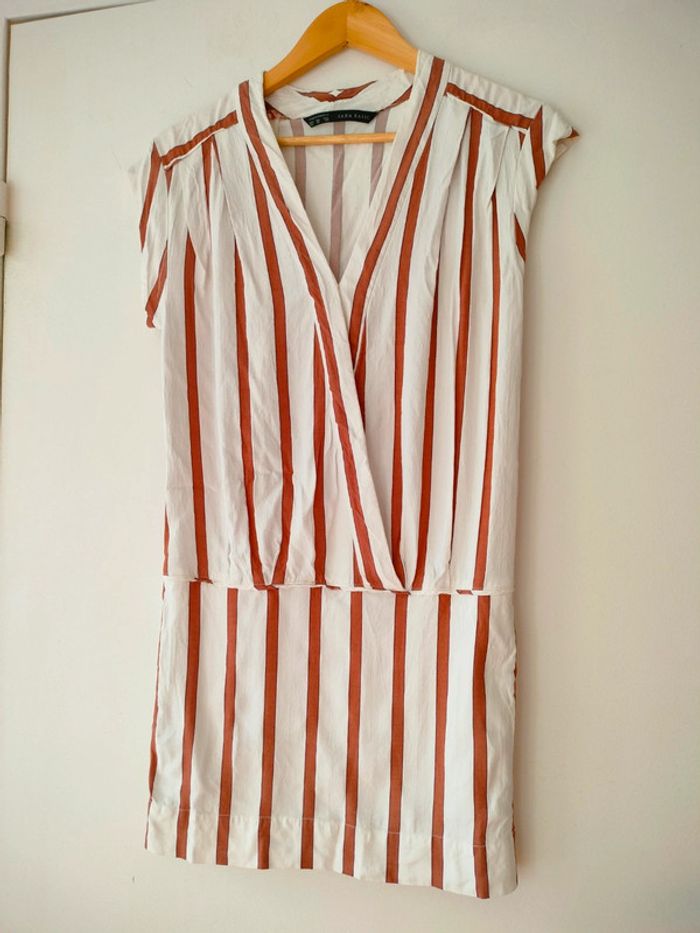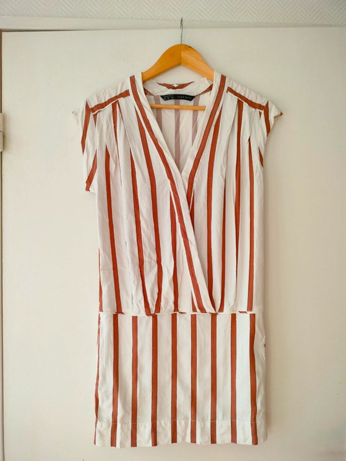Robe rayée blanche/marron Zara XS - photo numéro 5