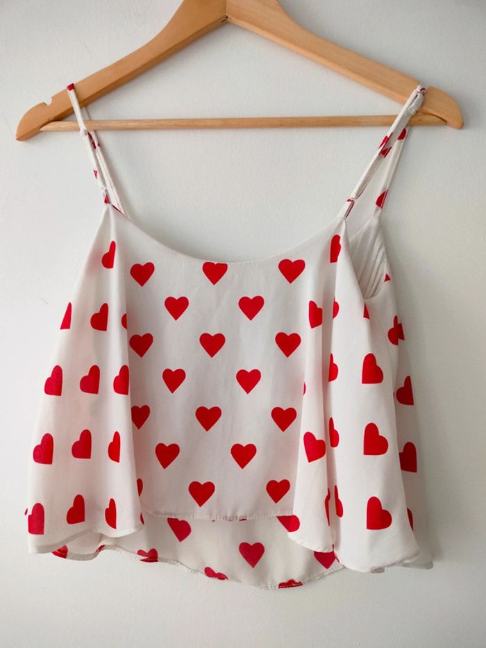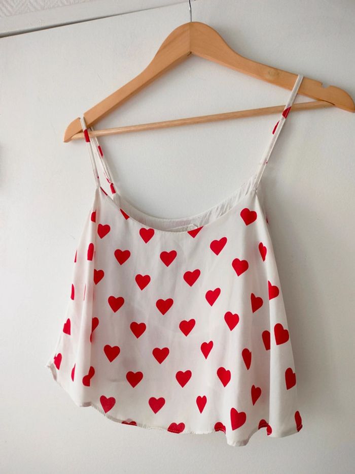 Top court avec brassière intégrée Taille S TB état #aedentop #aedensix #coeursrouges #topcoeursrouges #croptop #topcourt