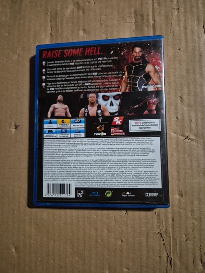 Jeu WWE 2K16 pour PS4 en très bon état. La boîte du jeu est en allemand mais le jeu passe bien également en français. #jvtm59_PS4