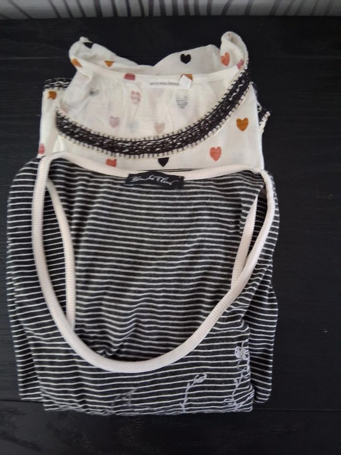 Lot de 2 chemises de nuit en coton 1 manches courtes marque monoprix 1 sans manches marque blanche fleur