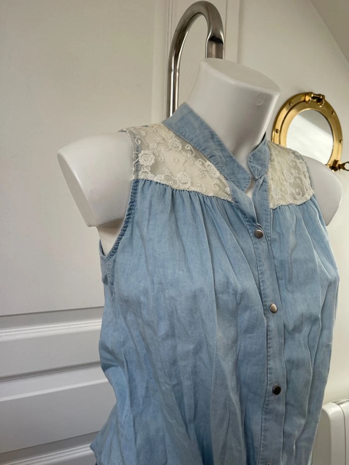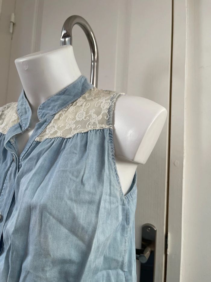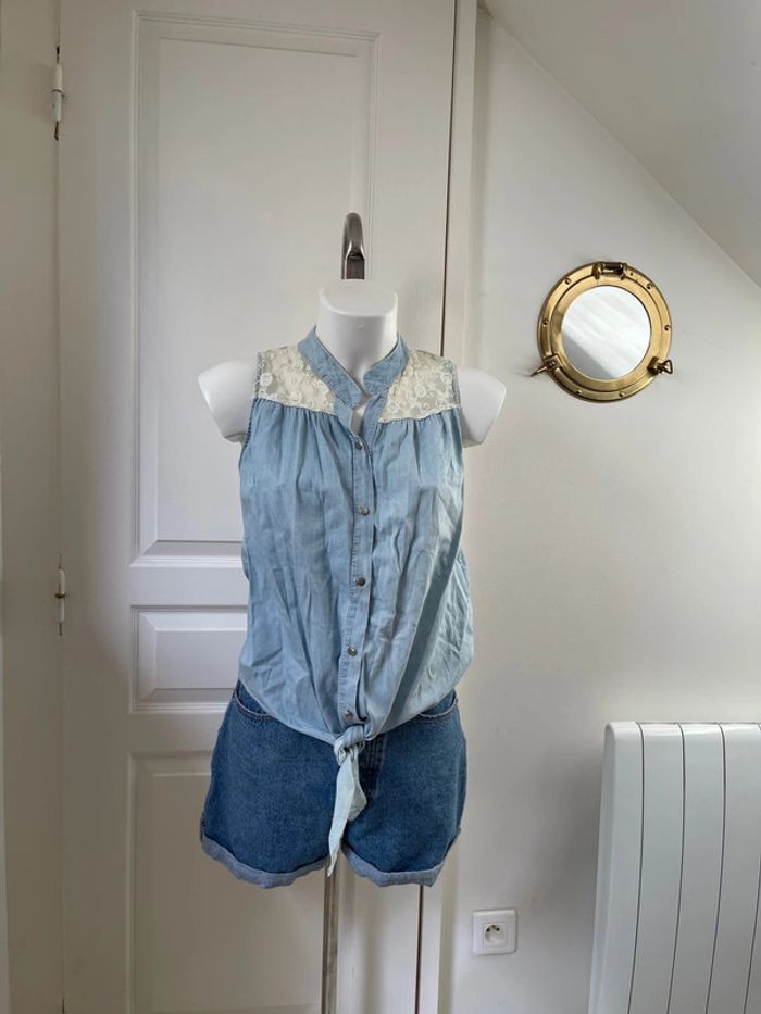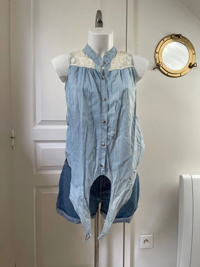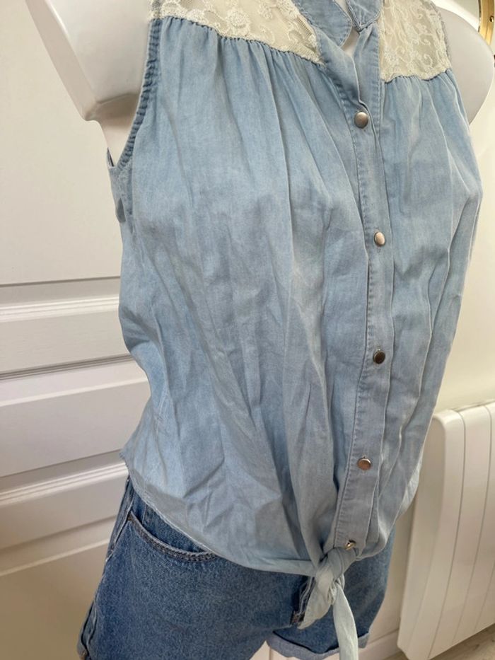 Chemise sans manches, effet dentelle sur le haut. Se noue sur le bas. Made in Italie C3. #taille36 #chemisesansmanches #effetdentelle #noué