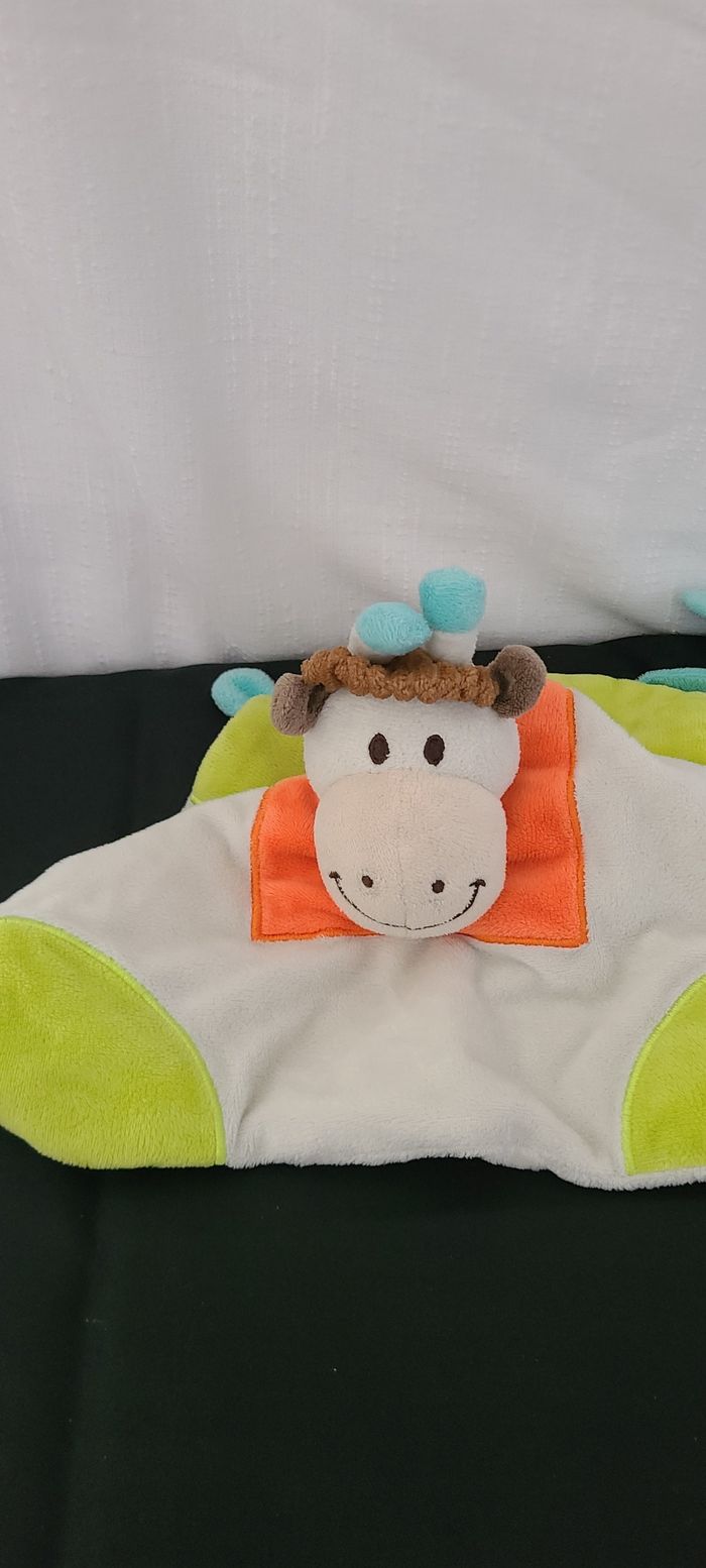 Doudou plat vache orange vert blanc bleu PITCHOON - photo numéro 1