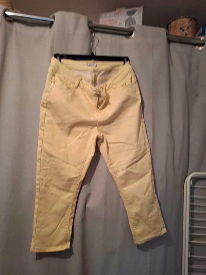 Magnifique pantacourt effet jean jaune pâle - photo numéro 1