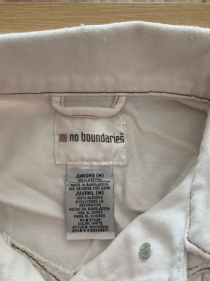 Veste en jean blanche 4 poches Effets déchirés à certains endroits 100% coton Elle est neuve jamais portée No Boundaries