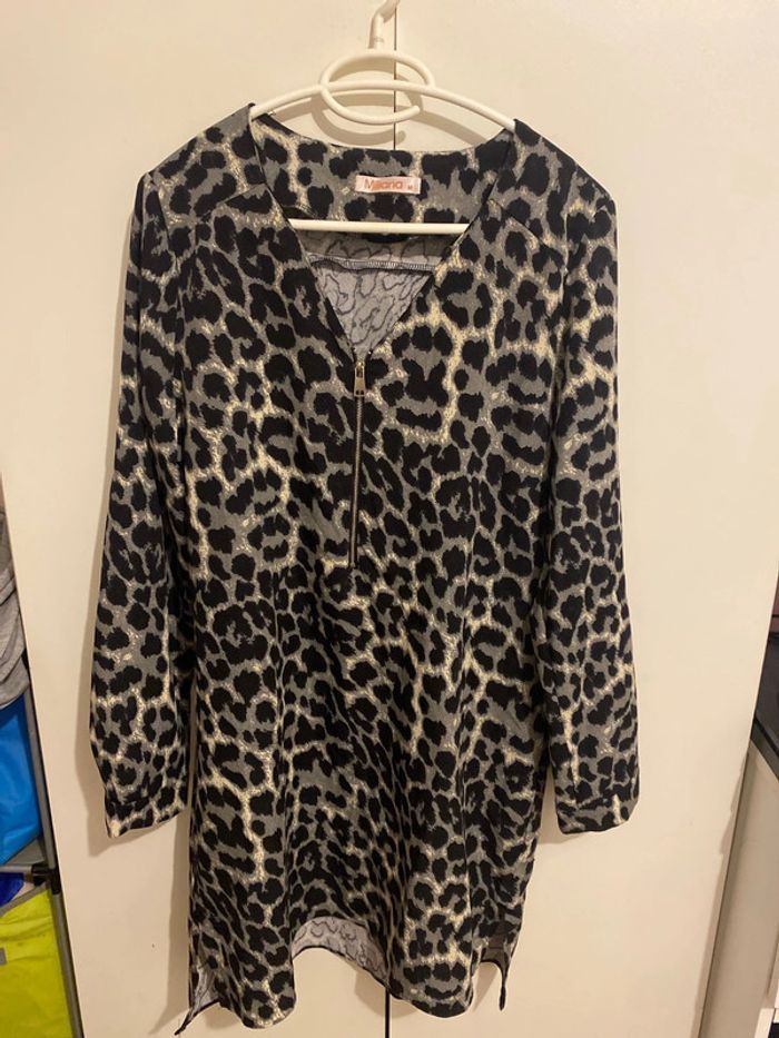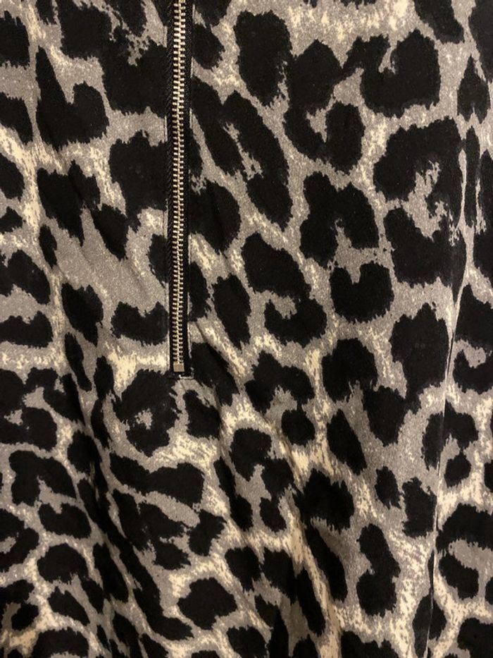 Tunique longue Motifs leopard Fermeture éclair devant col V Manches longues