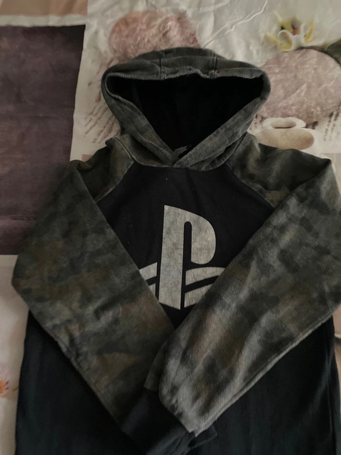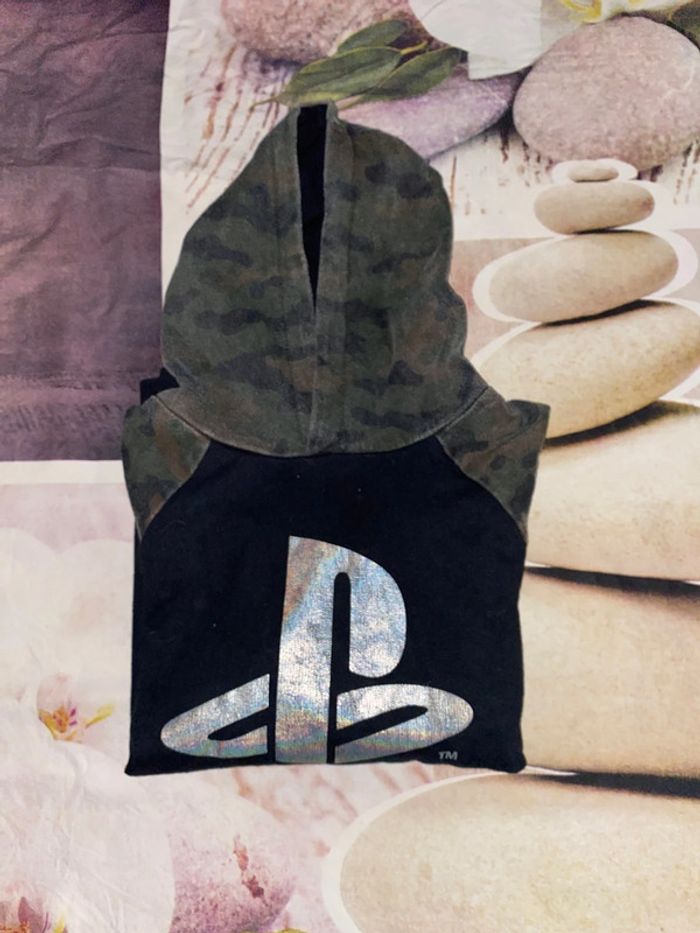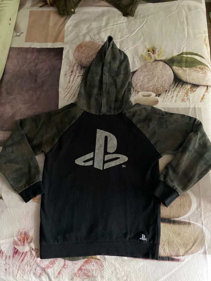 Pull avec capuche Noir et manches militaires Logo PlayStation Taille 9/10 ans