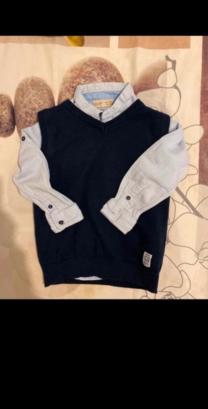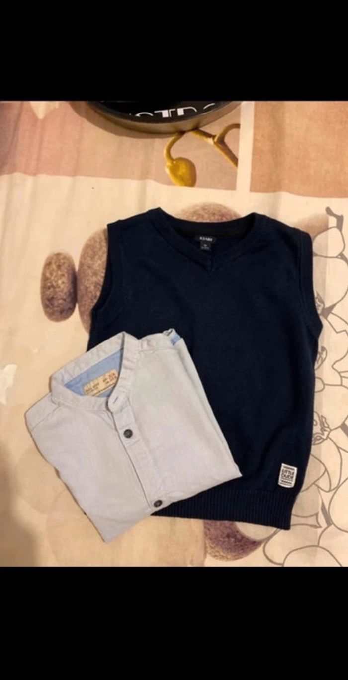 Lot pull sans manches + chemise taille 3/4 ans