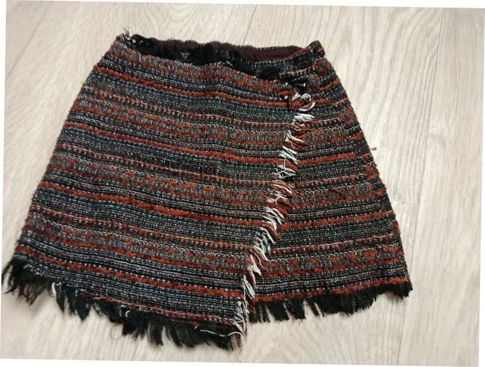 Peu portée très bon état Jupe type portefeuille se ferme avec un bouton Réglable à la taille Longueur 28cm #fillesixrgm #filleseptrgm #fillehuitrgm