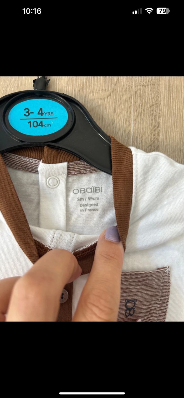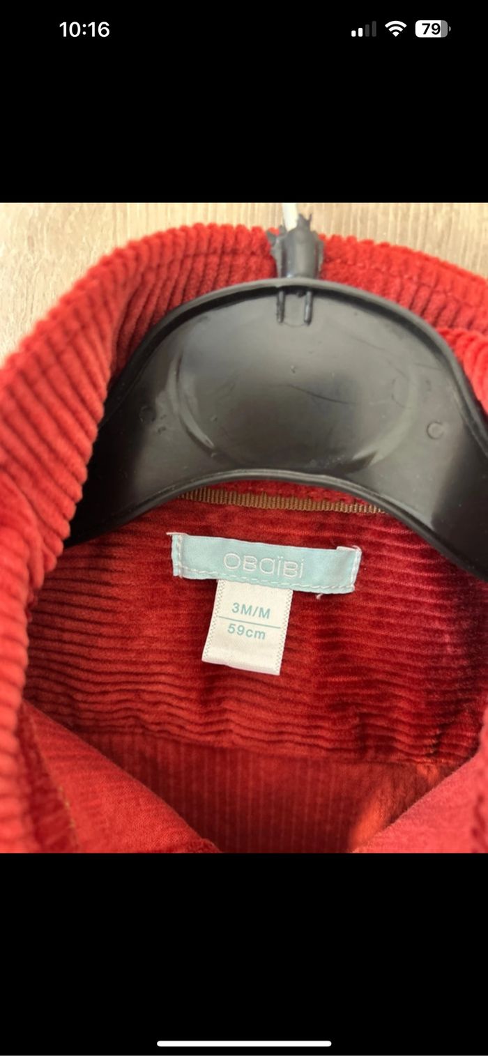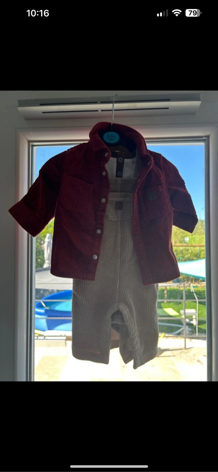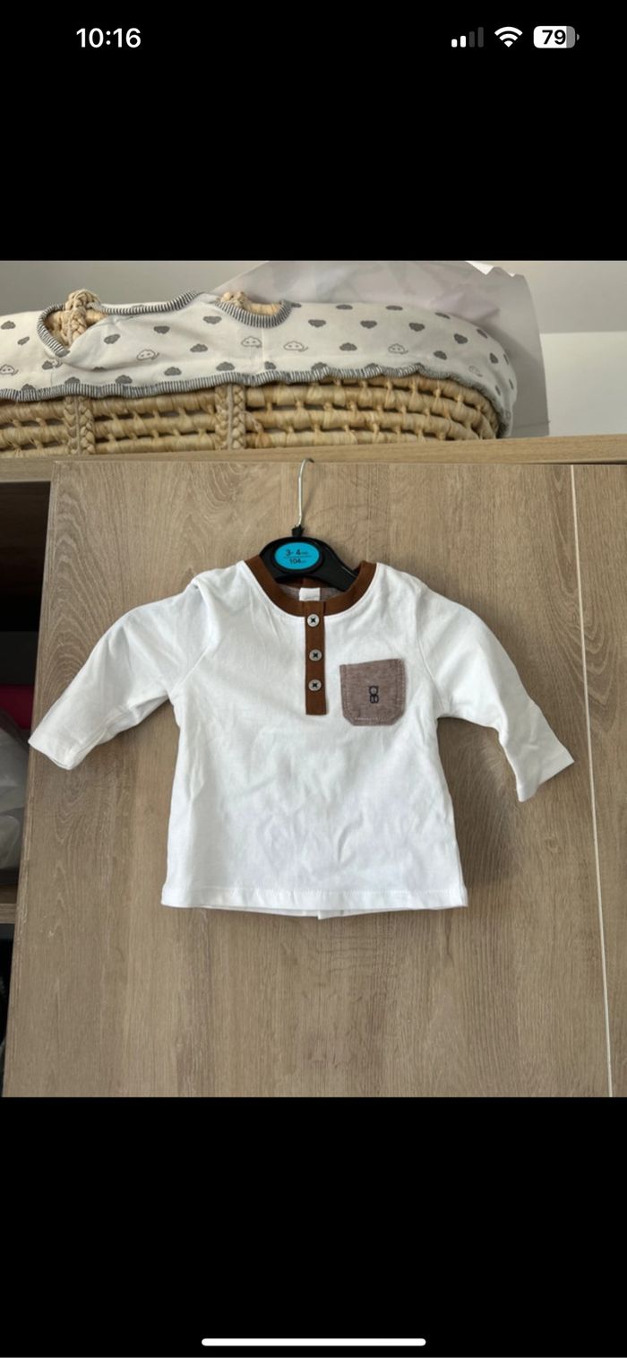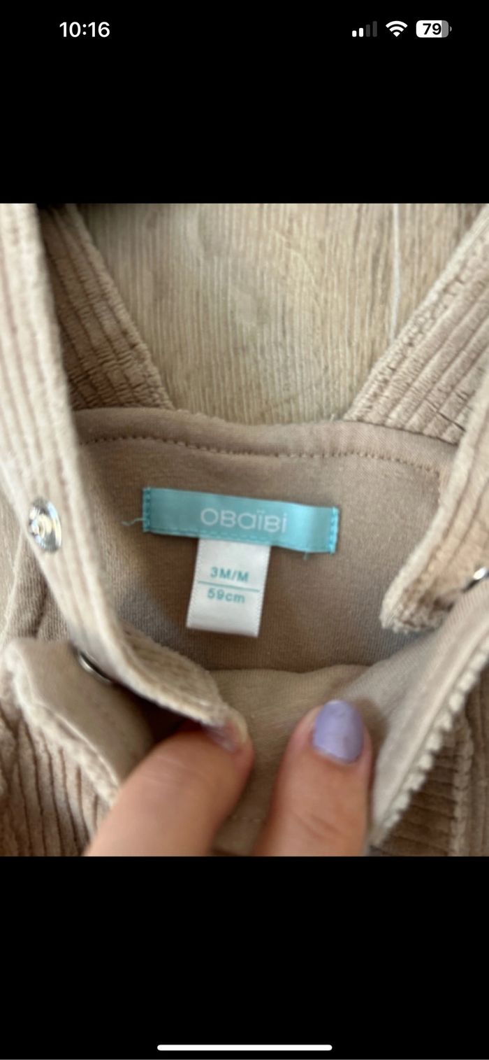 Ensemble t shirt manches longues, salopette et veste chemisier velours Taille 3 mois neuf jamais porté