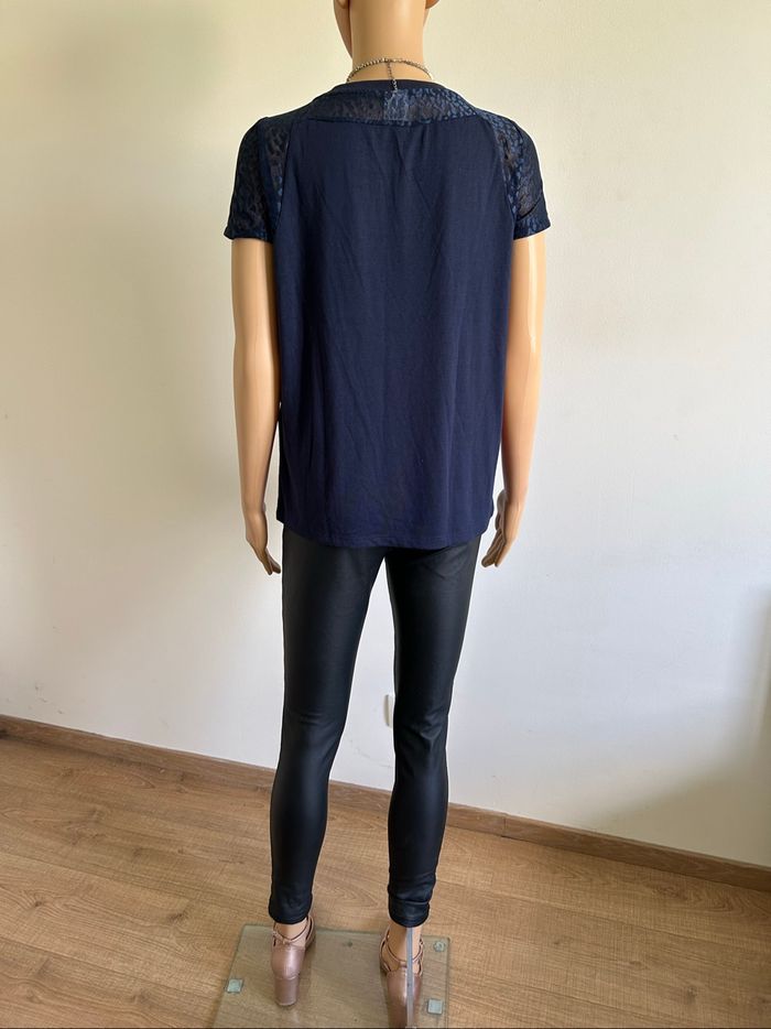 Teeshirt bleu marine avec dentelle Vero Moda taille S TBE - photo numéro 3