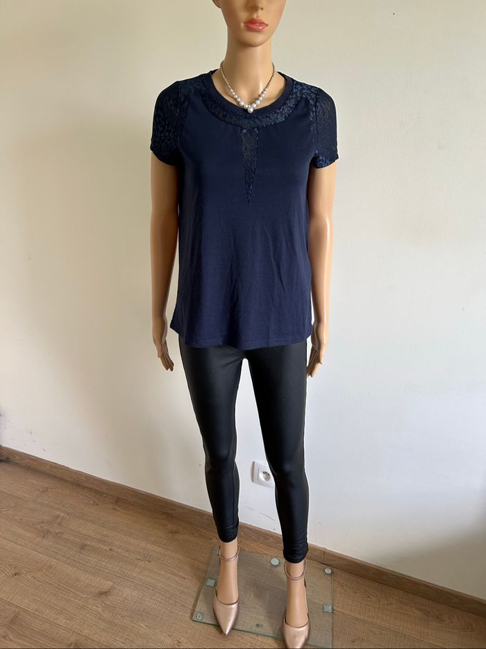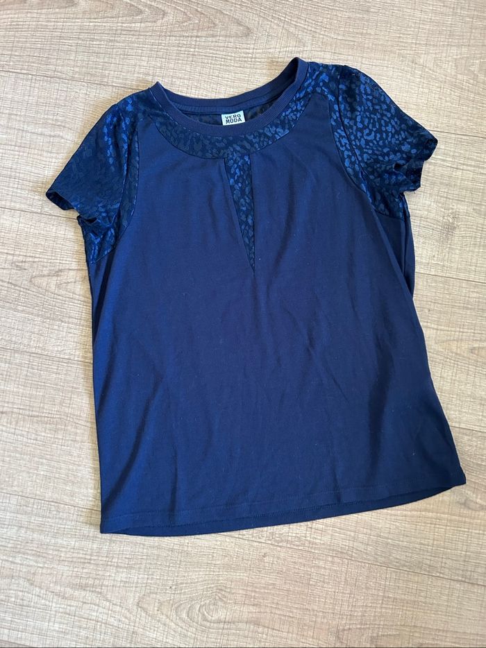 Teeshirt bleu marine avec dentelle Vero Moda taille S TBE - photo numéro 1
