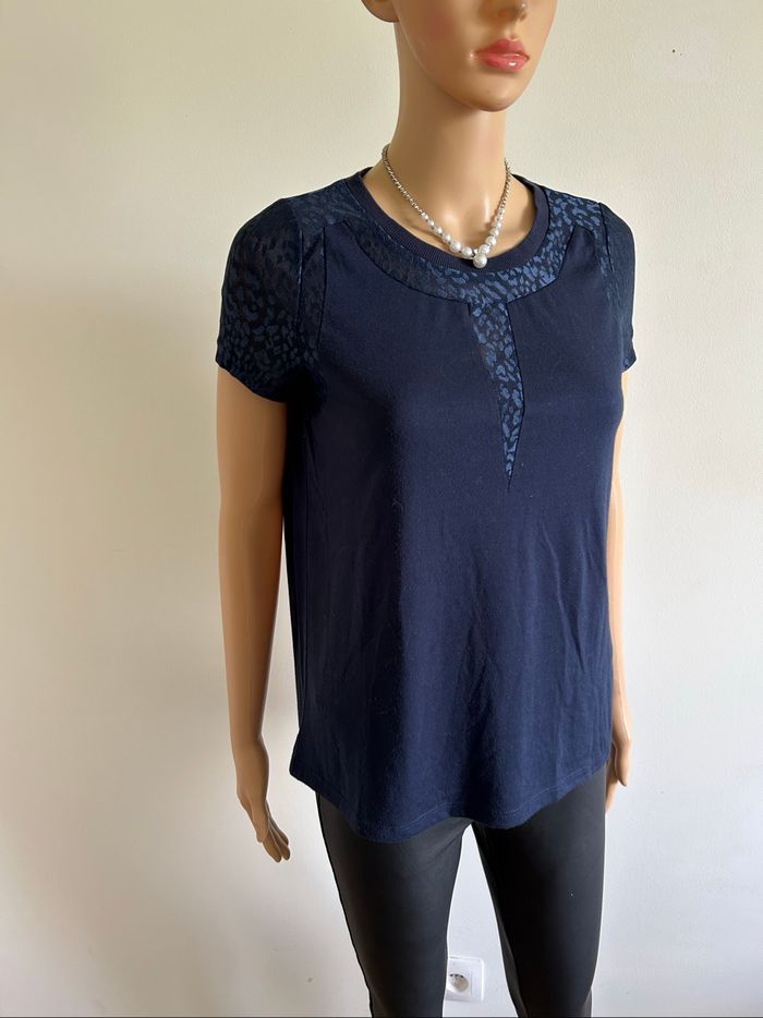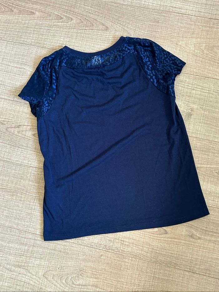 Teeshirt bleu marine avec dentelle Vero Moda taille S TBE - photo numéro 2