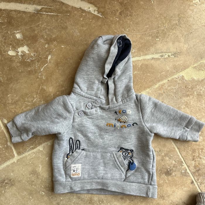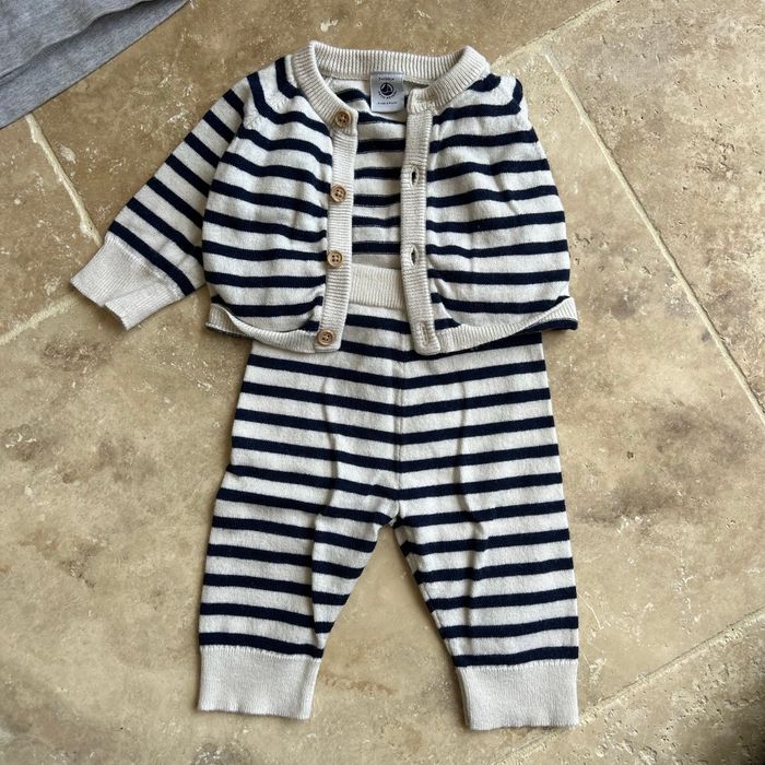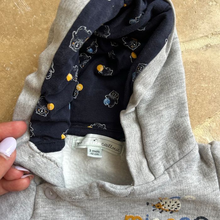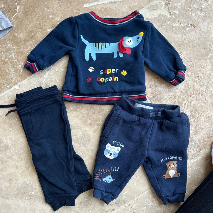 Lot de vêtement bébé 3 mois - t shirt manches longues - pull gris polaire marque mes petits cailloux -ensemble bleu et jogging bleu foncé intérieur polaire - ensemble gilet + pantalon petit bateau - un legging et un pantalon -1 pyjama 2 pièces