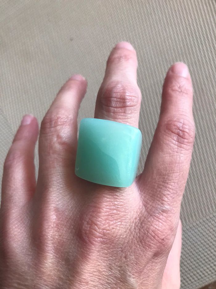 Bonjour Bague en plastique turquoise clair. En excellent état puisque bien trop grande pour moi, portée pour la photo, aucune idée de quelle marque elle peut être. #carinelpcbijoux #carinelpcbagues