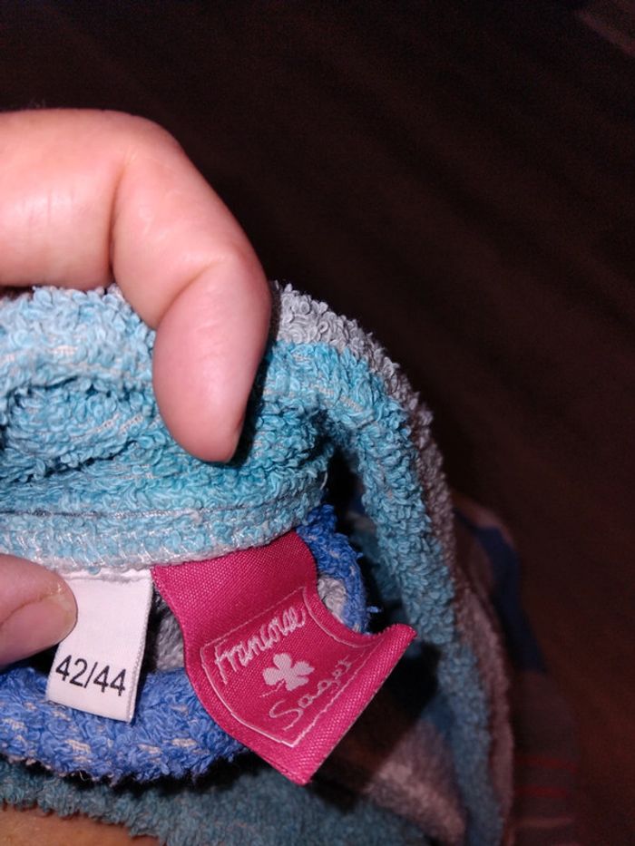 Bonjour, je vends ce peignoir multicolore de la marque Françoise Saget taille 42/44 en bon état. Lavé maison non fumeur.