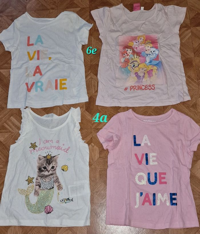 Lot 4maillot 4ans ⚠️ ⚠️ maillot princesse dessin effacer légèrement Debardeur neuf 2autre t shirt en bon etat H&m Inextenso Kiabi