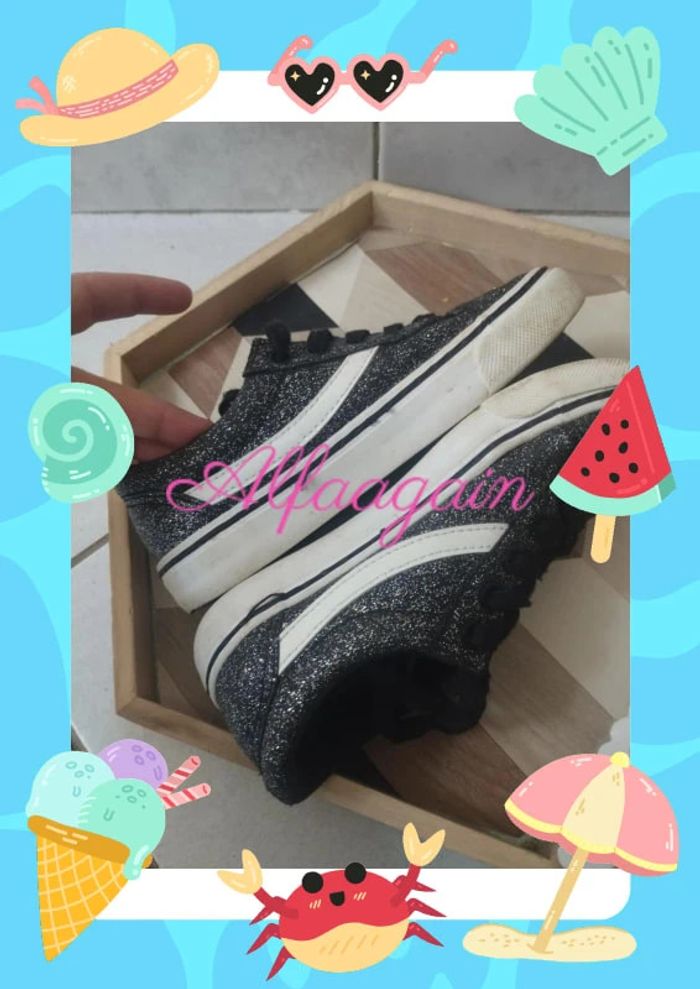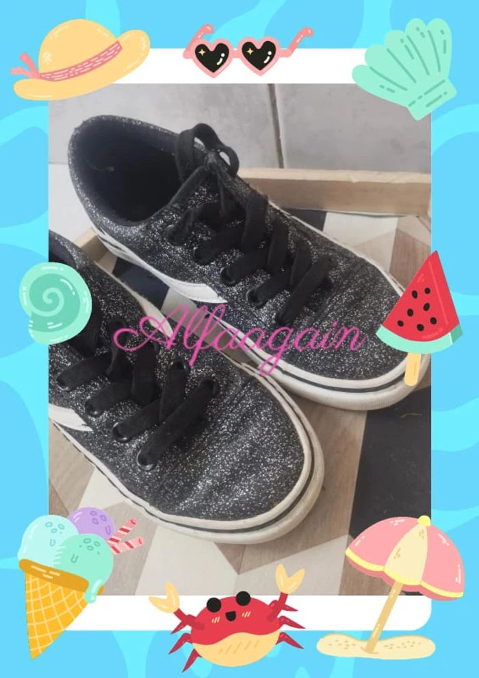 Baskets basses noires pailletées . Fermeture lacets . Taille 32 très bon état -unique usure talon d'une chaussure sur semelle. A vendre 8€50 --------------------------- ✏️Informations générales ✏️ 📩Expédition dans la journée en général -hors weekend. 🚭Maison non fumeur / sans animaux 📅Pas de réservation 📸Pas de photo porté 👛 Bon plan Envoi à 99ct (+20% récupéré en bon d'achat) possible uniquement pour les français- me contacter pour plus d'infos 😉 #alfaagain32shoesfille