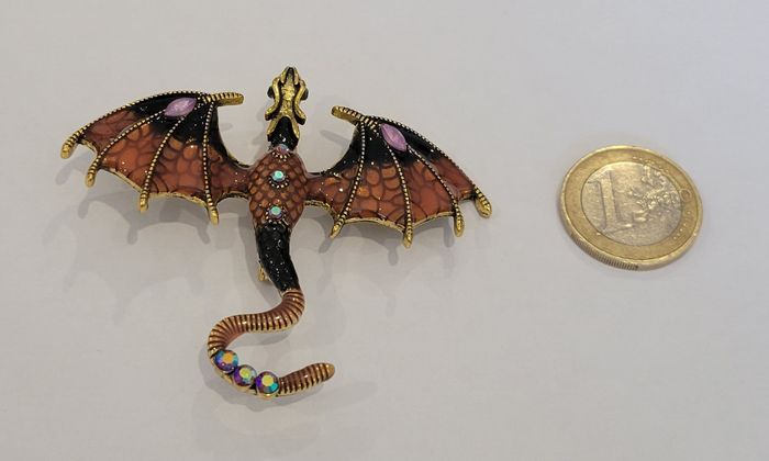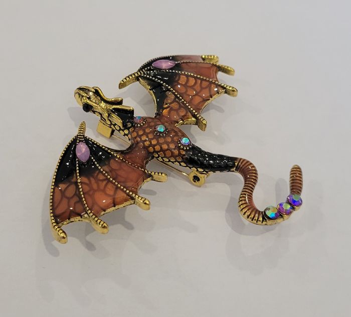 BROCHE DRAGON DORE MARRON ET NOIR STRASS ! NEUF ! - photo numéro 5