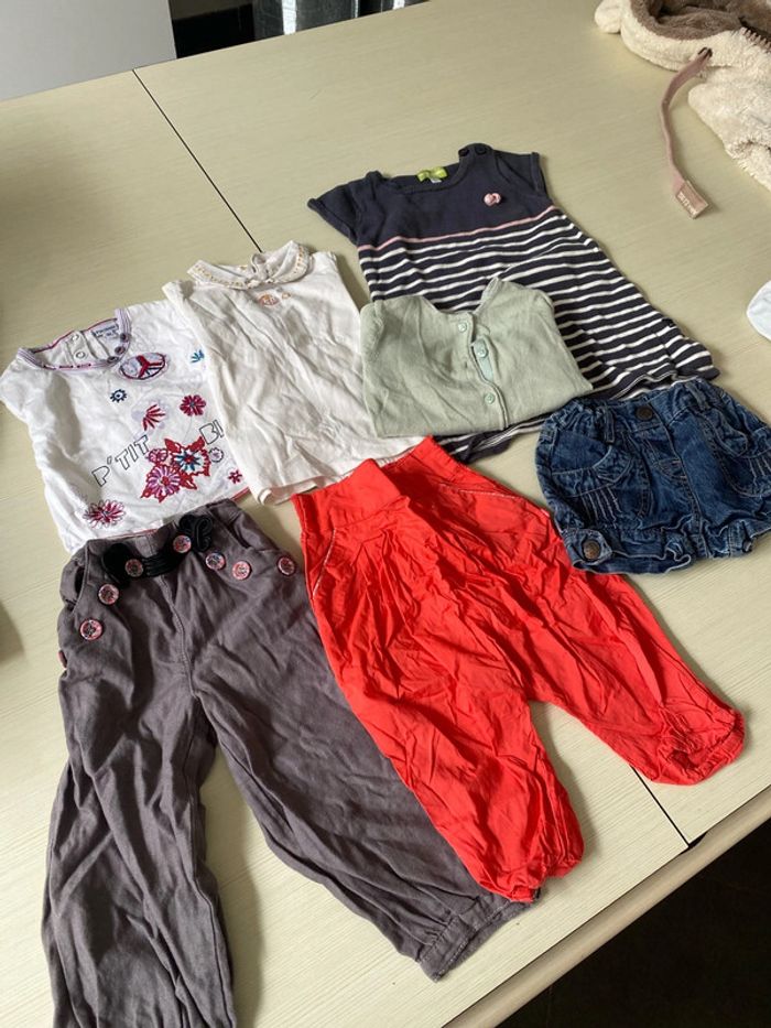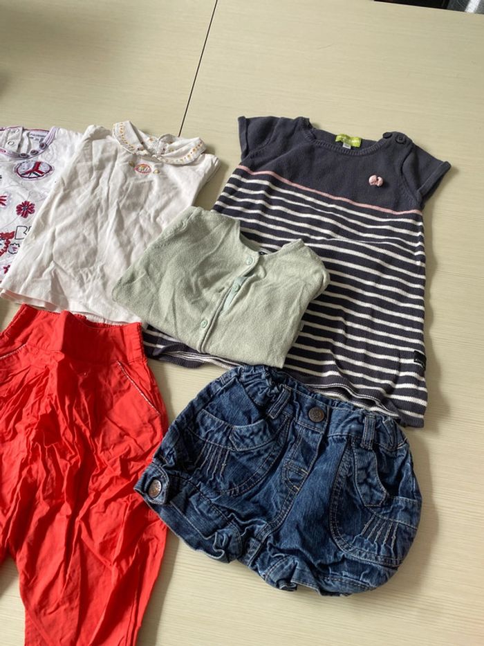 Lot 2ans 2 pantalon tao et obaibi 1 short une robe deux hauts et un gilet vert
