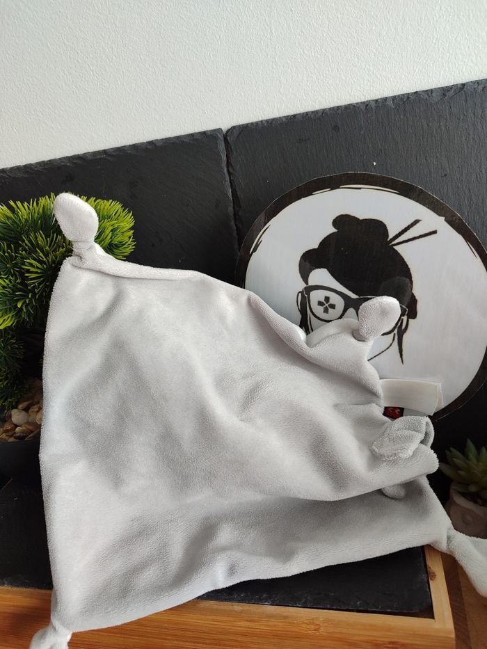 Doudou plat lapin blanc gris Etoile argenté Simba Nicotoy rose carré Attache - photo numéro 2