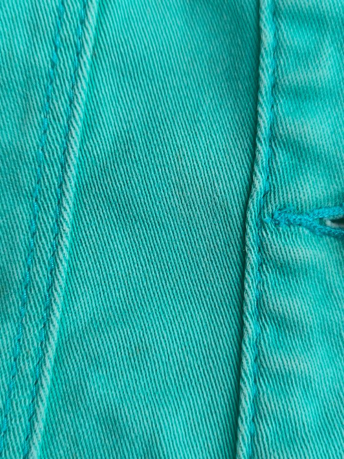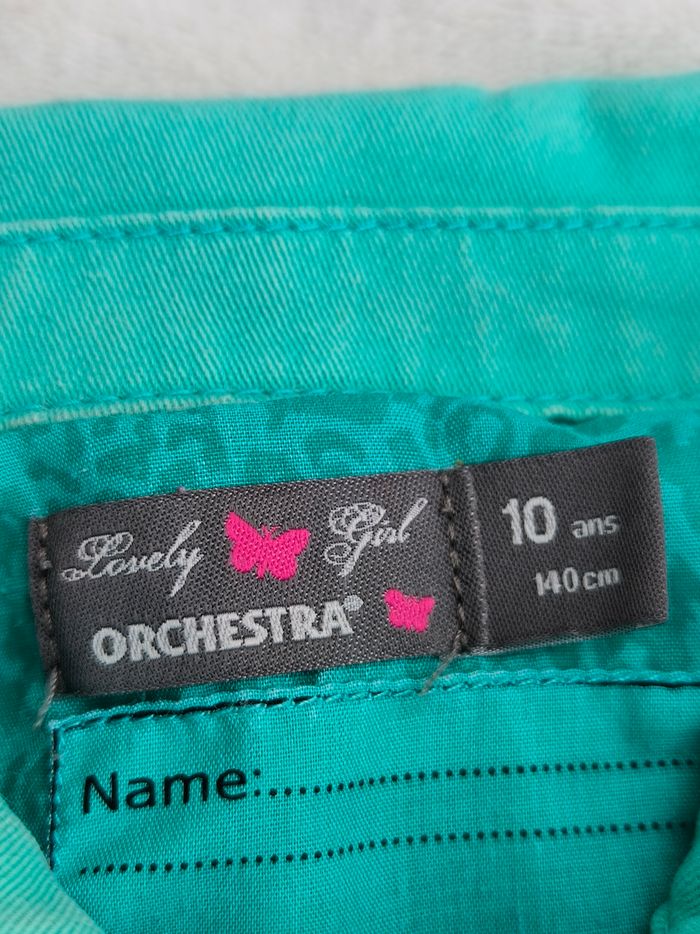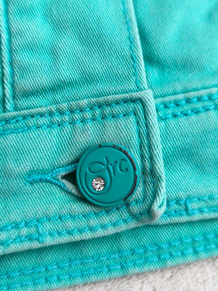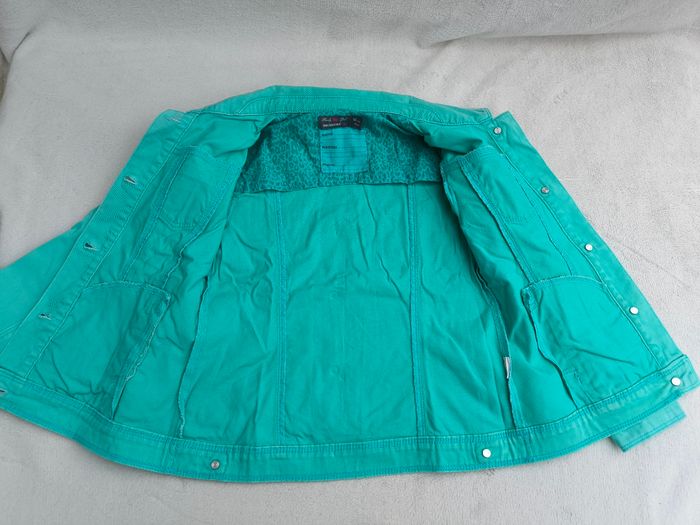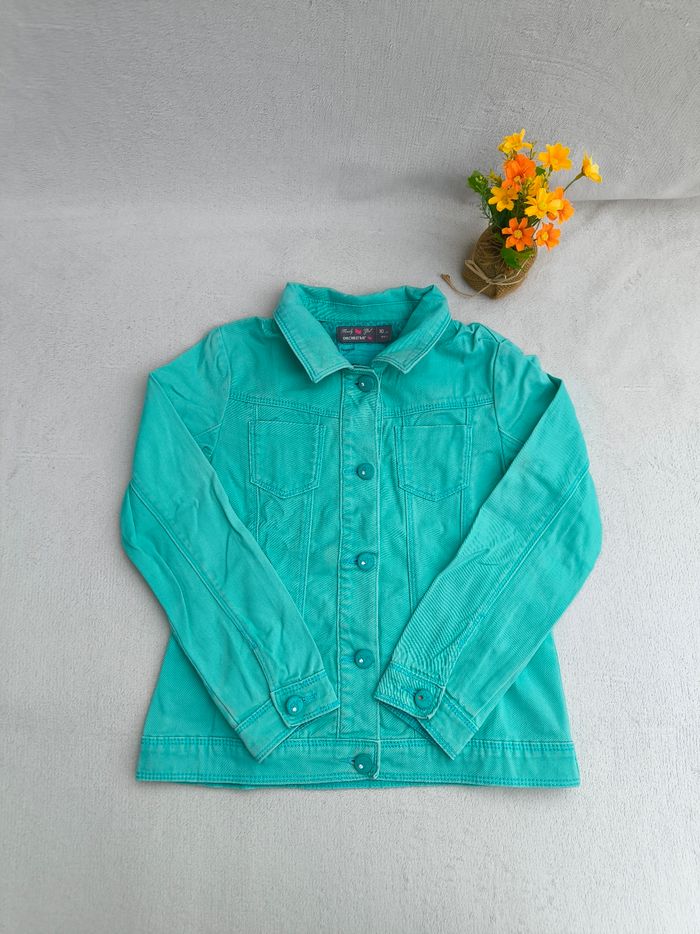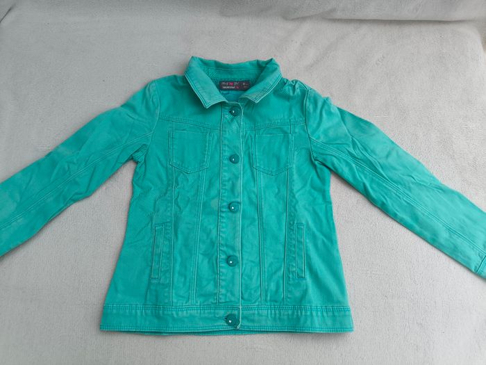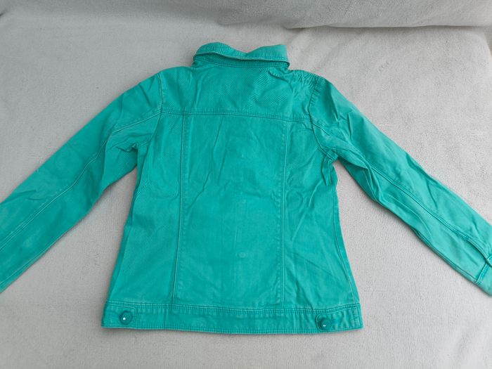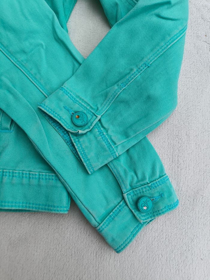 Veste en jean à manches longues Marque Orchestra Taille 10 ans, 140 cm • Coloris bleu turquoise • Fermeture par boutons • 4 poches • Taché En bon état #evelyne_filles_10ans #evelyne_filles