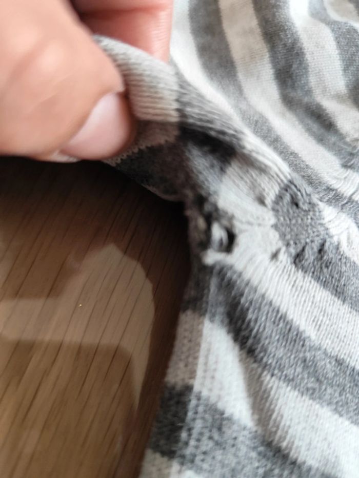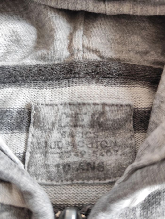 Gilet a capuche 10ans Rayé Petit trou sous le bras voir photo Sinon très bon état