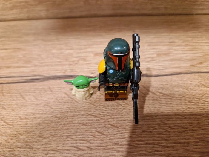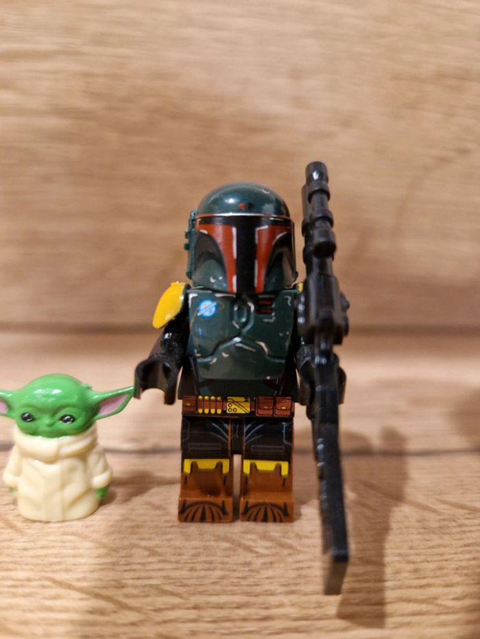 Figurine type lego Boba Fett avec bébé Yoda Grogu Mandalorian star wars #shelbystarwars