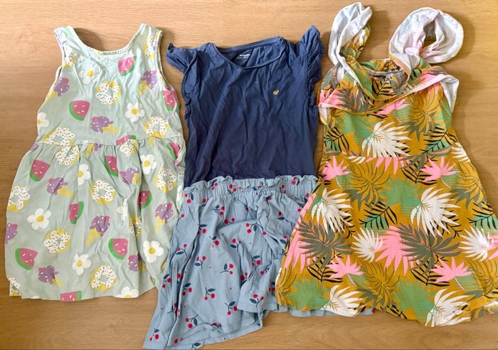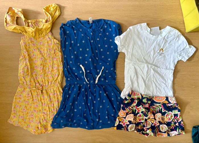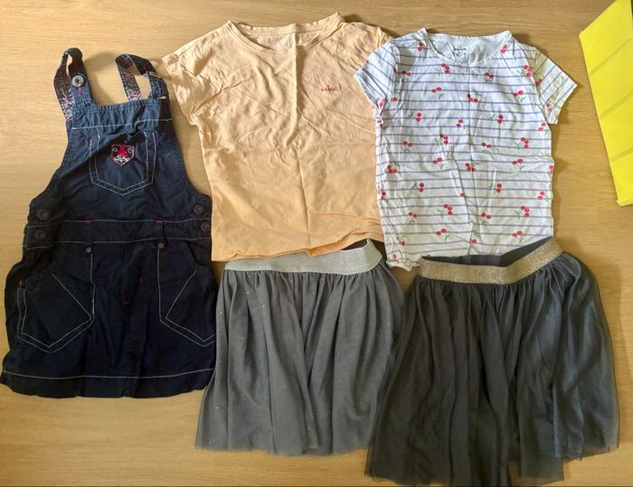 En TBE. Utilise un été pour ma fille, je revends l’ensemble à petit prix. Toutes les photos n’ont pas pu être chargées n’hésitez pas à demander. Il y a de tout : jupes, shorts, leggings, robes, pyjama léger, pull, veste en jean, t shirts , pour tenir tout l’été